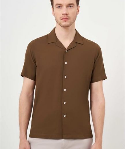 Рубашка Morven для мужчин из вискозы, регулярный фасон, короткий рукав, цвет: темно-коричневый, состав: 62% вискоза, 36% полиэстер, 2% эластан