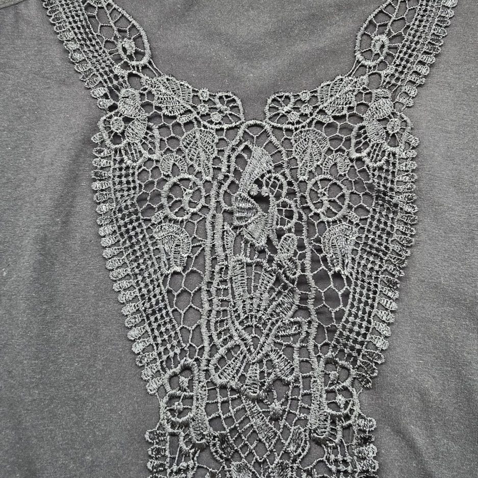 Женская майка на широких лямках с ажурной вышивкой на спине.