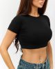 Укороченный кроп топ Berrak черного цвета с короткими рукавами. Ткань в рубчик.