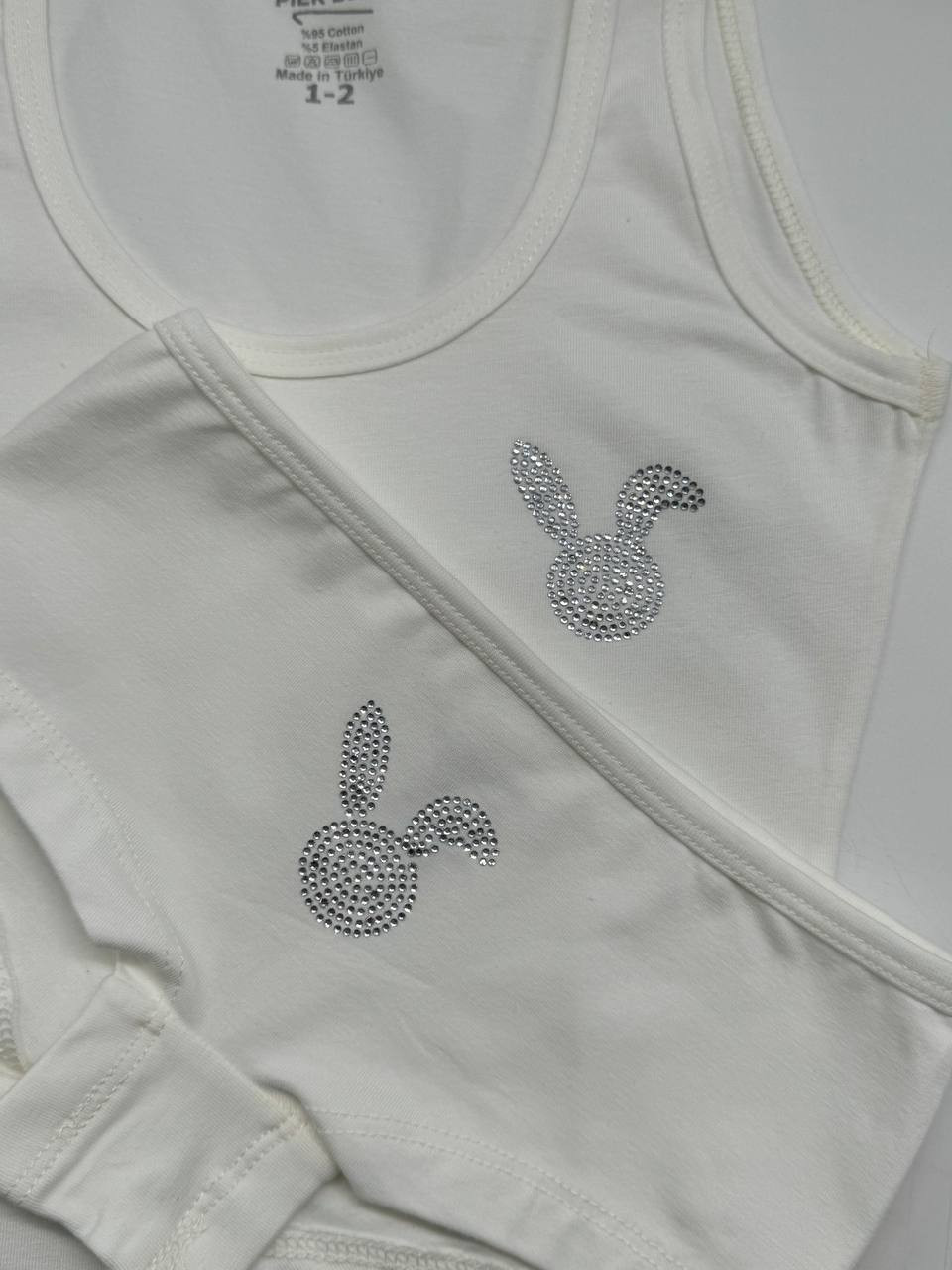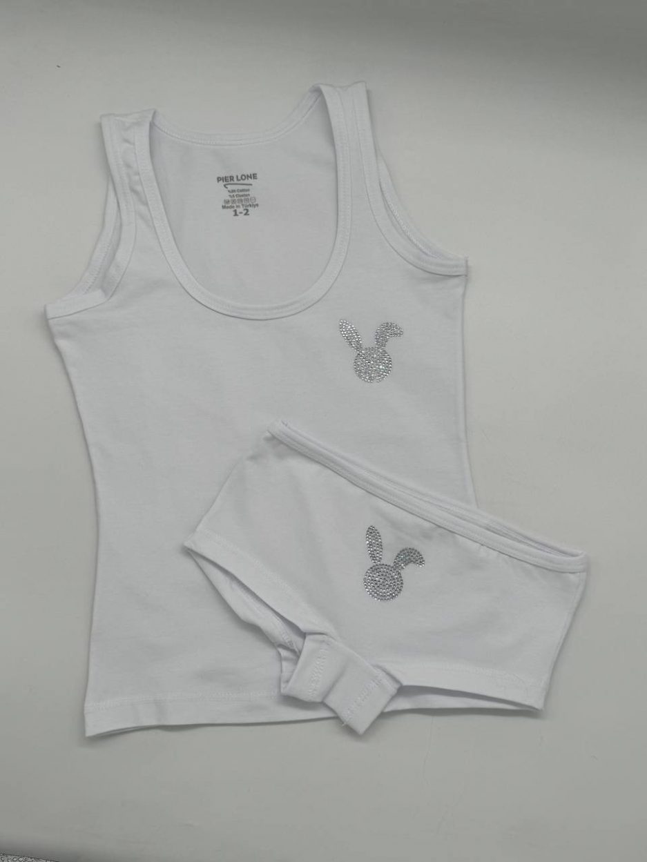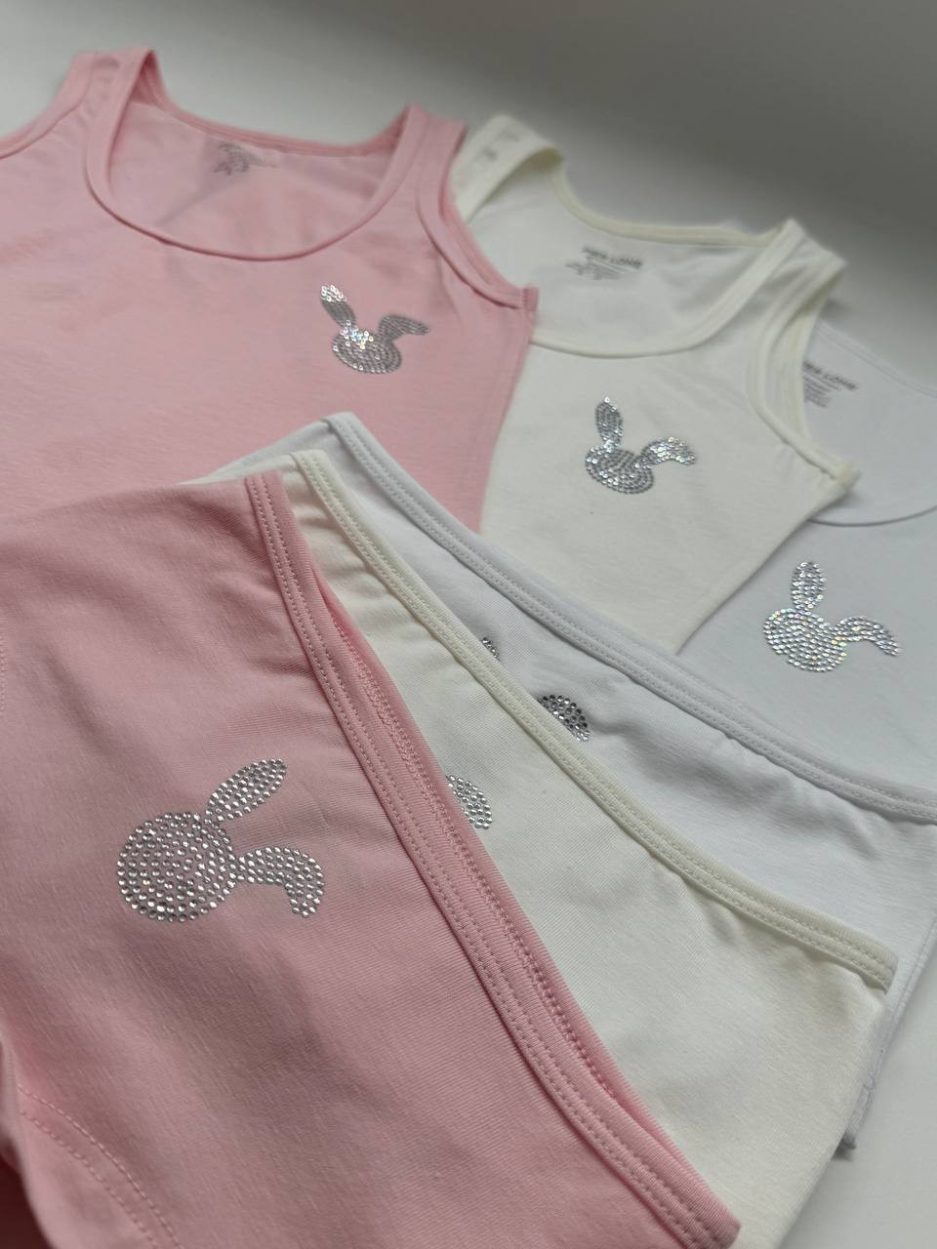 Комплект для девочки состоит из майки на широких бретельках и трусиков. Цвета в ассортименте. Цена указана за 1 комплект.