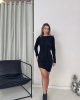 Асимметричное черное мини-платье из трикотажа, длина 80 см, эластичное, не просвечивает, доступные размеры S, M, L