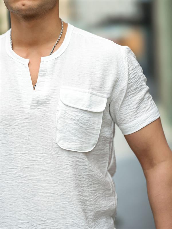 Белая футболка с V-образным вырезом и карманами, 100% хлопок, дышащая ткань, комфортный покрой, идеально сочетается с чиносами и джинсами