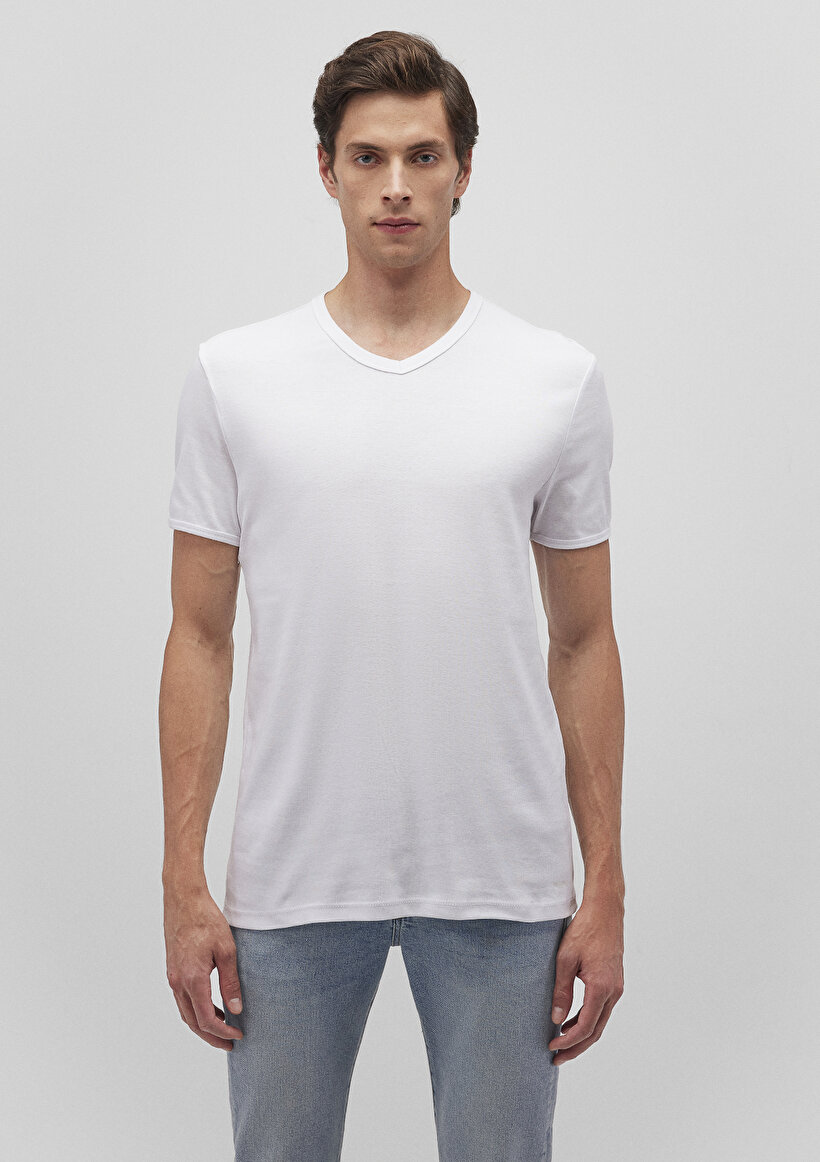 Белая футболка с V-образным вырезом и ribana, 100% хлопок, slim fit, короткий рукав, супер мягкая ткань, доступна в размерах S, M, L, XL, XXL