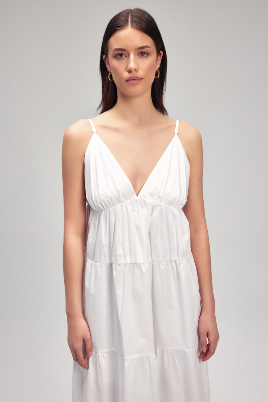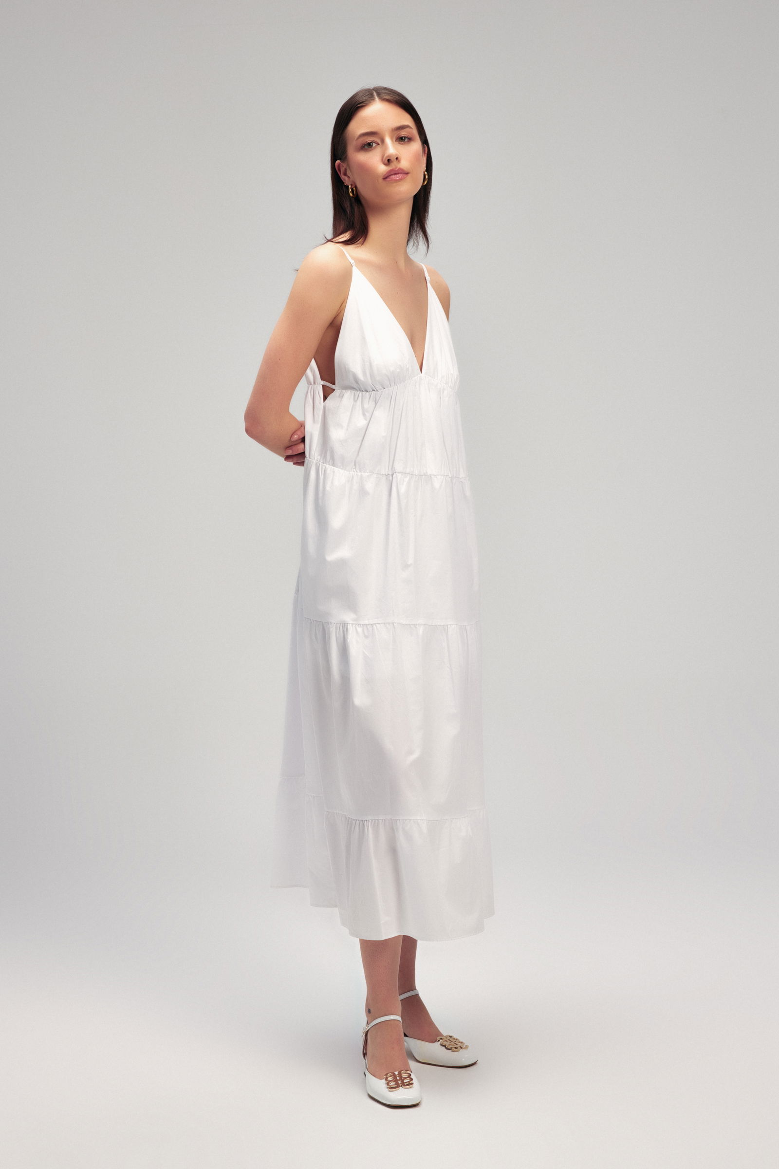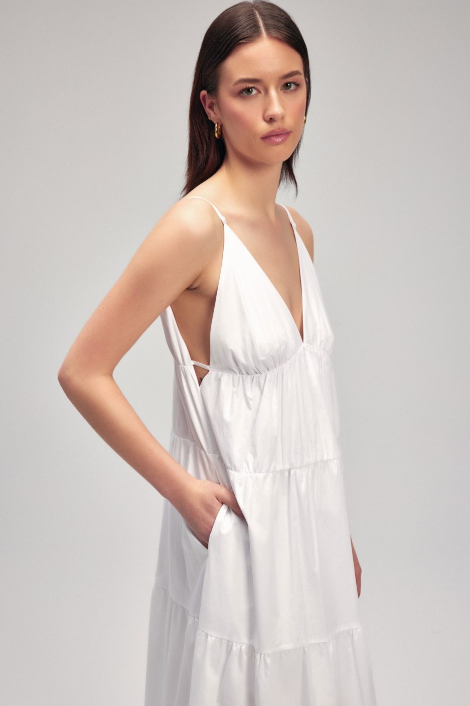 Белое платье с вырезом на шее V-образного кроя от MAVI, 100% хлопок, доступно в размерах XL, L, M, XXL
