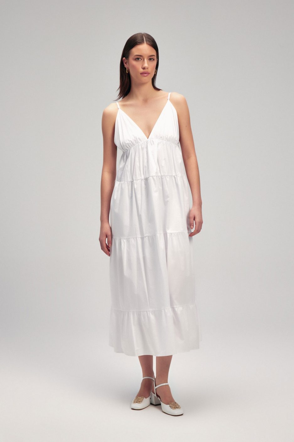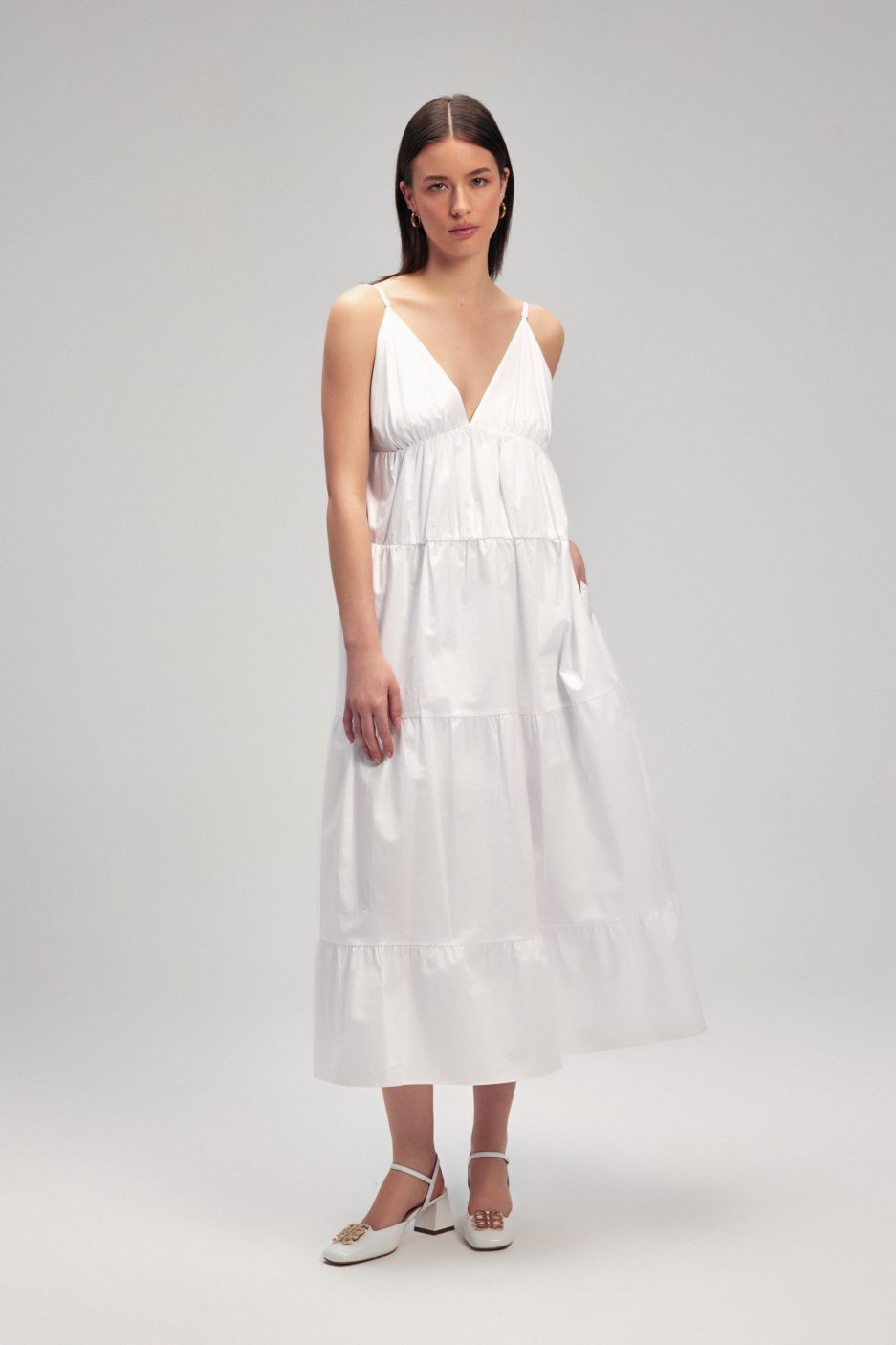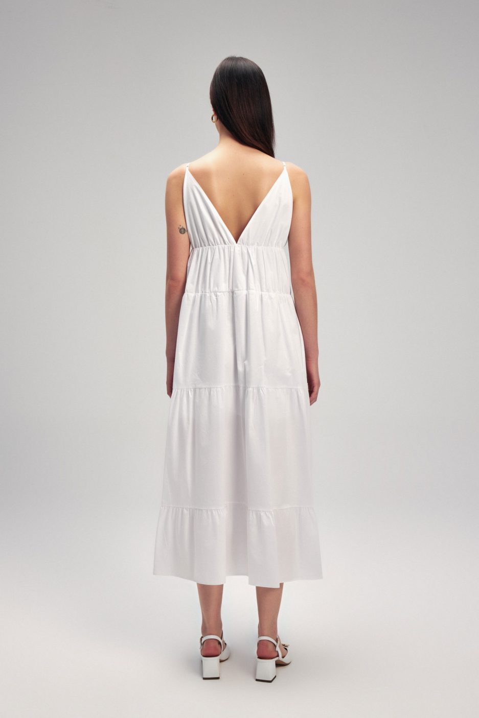 Белое платье с вырезом на шее V-образного кроя от MAVI, 100% хлопок, доступно в размерах XL, L, M, XXL
