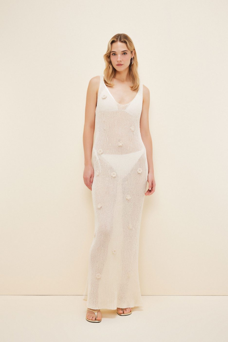 Бежевое платье MAVI с цветочным узором, трикотажное, без рукавов, V-образный вырез, стиль пляжный, размер L