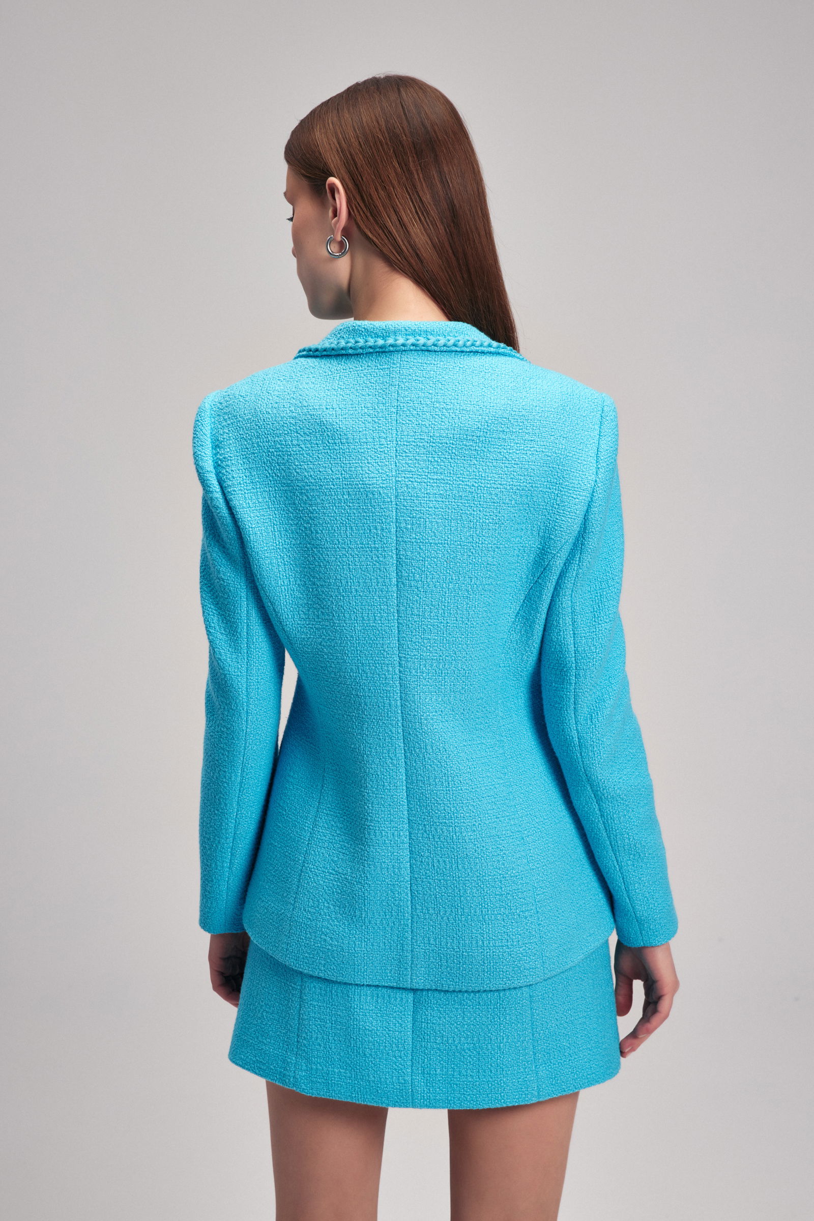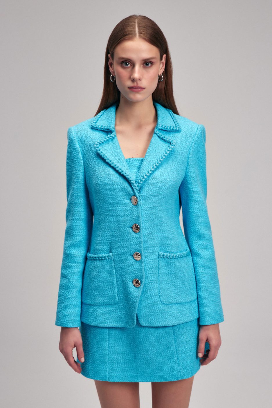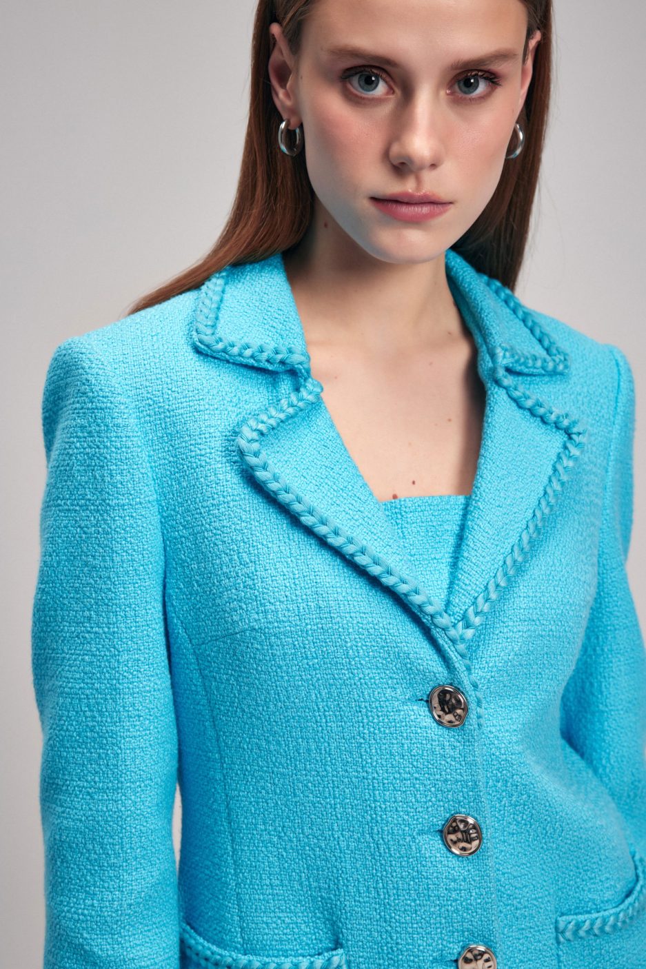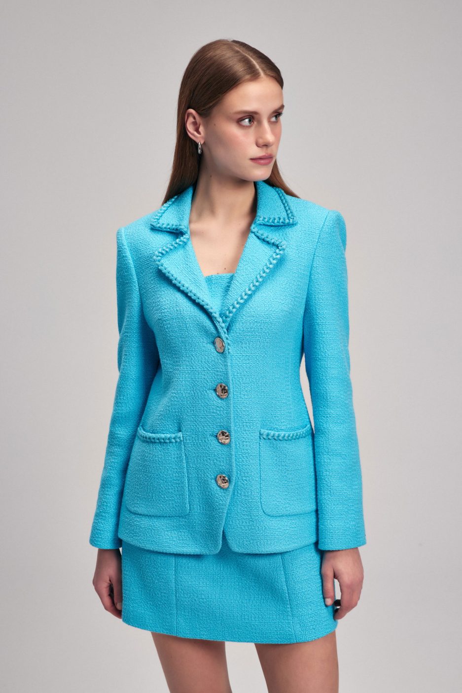 Бирюзовый пиджак с карманами, прямой крой, кнопочная застежка, длинные рукава, офисный стиль, состав: 94% хлопок, 5% полиэстер, 1% лиоцелл