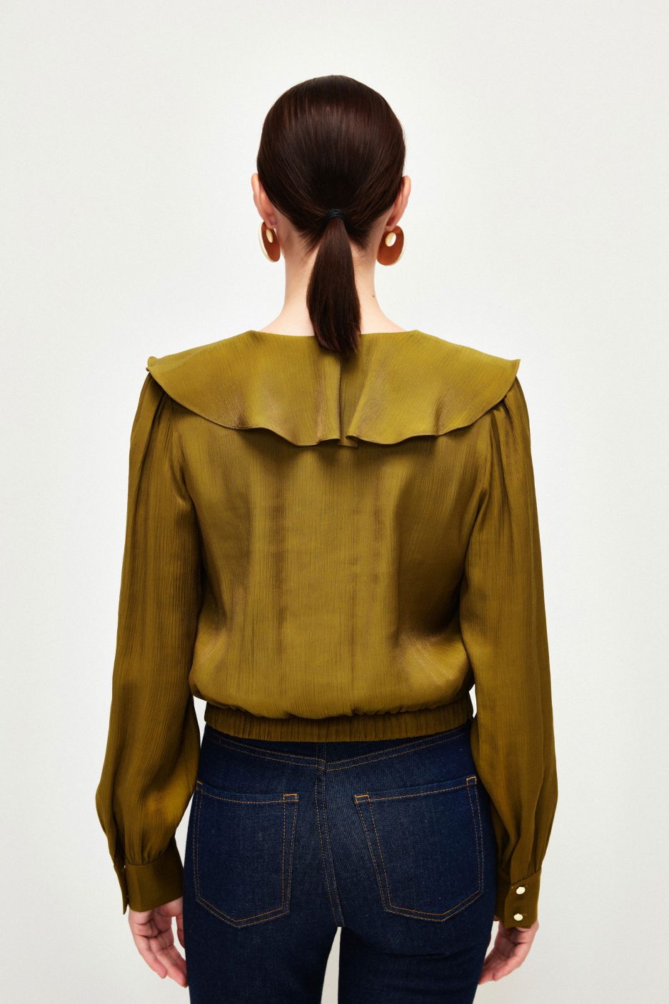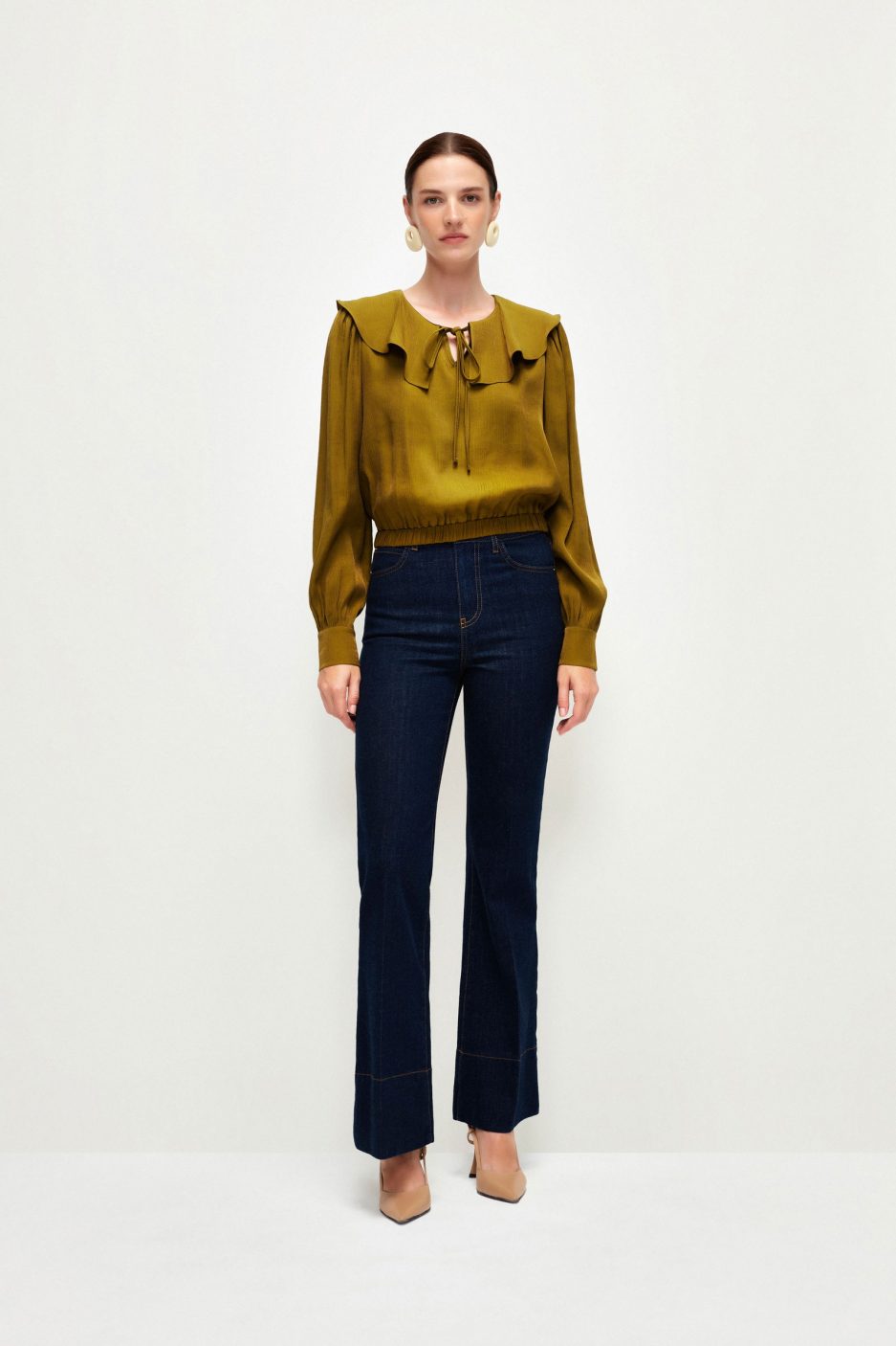 Эта стильная блуза станет идеальным дополнением коллекции одежды для уверенных в себе женщин. Прекрасно подходя для офисной атмосферы, она выделяется изогнутым дизайном с volanami и замысловатым детализированным воротником. Благодаря эластичному поясу она обеспечивает комфорт и легкость движения, идеально сочетая стиль и функциональность.Queenstore предлагает великолепный выбор, который позволит вам чувствовать себя уверенно и привлекательно. Каждая деталь продумана до мелочей, чтобы обеспечить идеальную посадку и подчеркнуть достоинства фигуры. Создайте выразительный образ, комбинируя эту блузу с другими элементами гардероба.