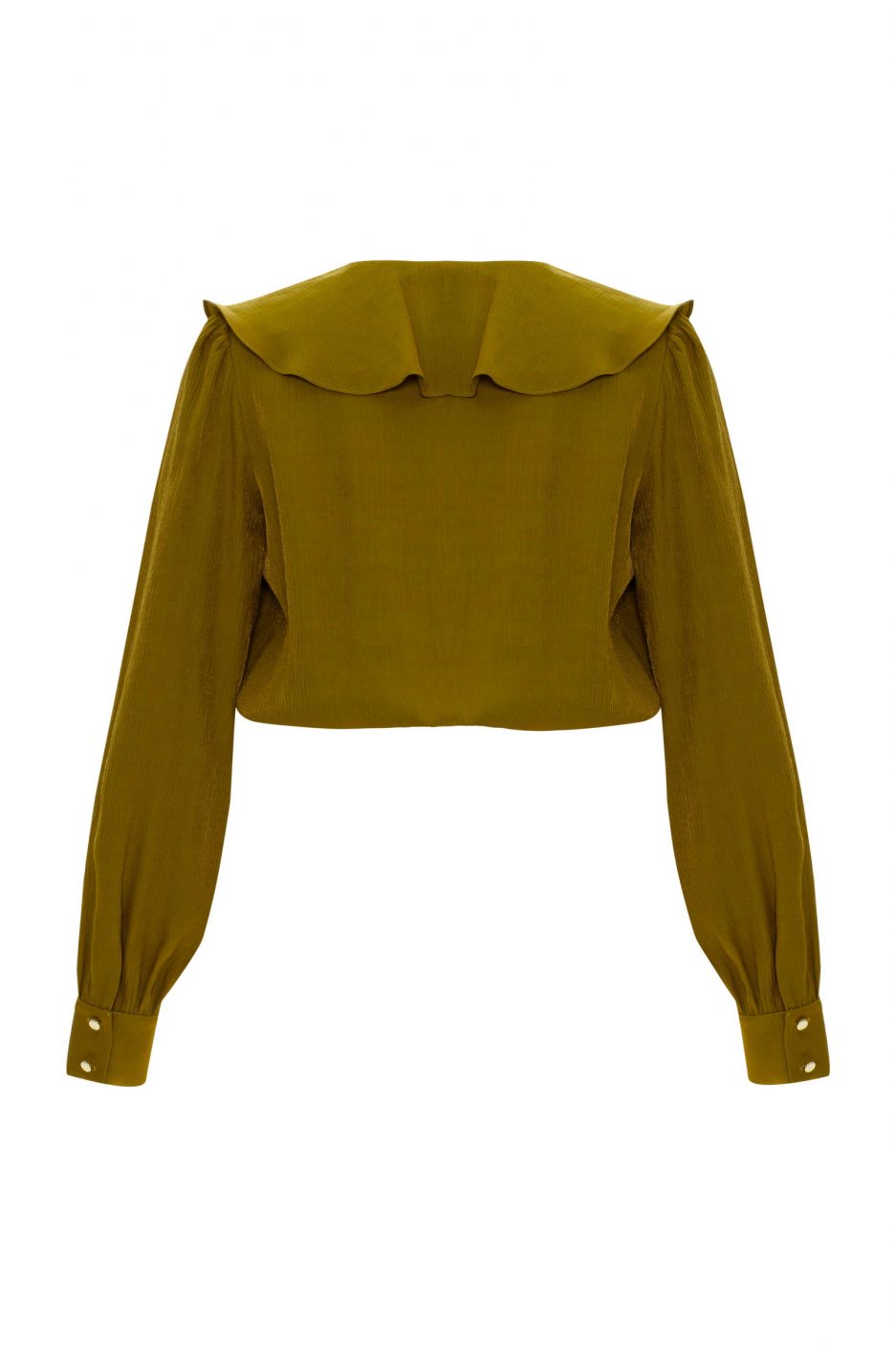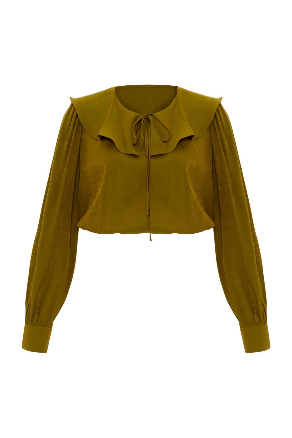 Блузка с воланами и укороченным воротником, талия на резинке, длинные рукава, 85% вискоза, офисный стиль, размеры XL и XXL