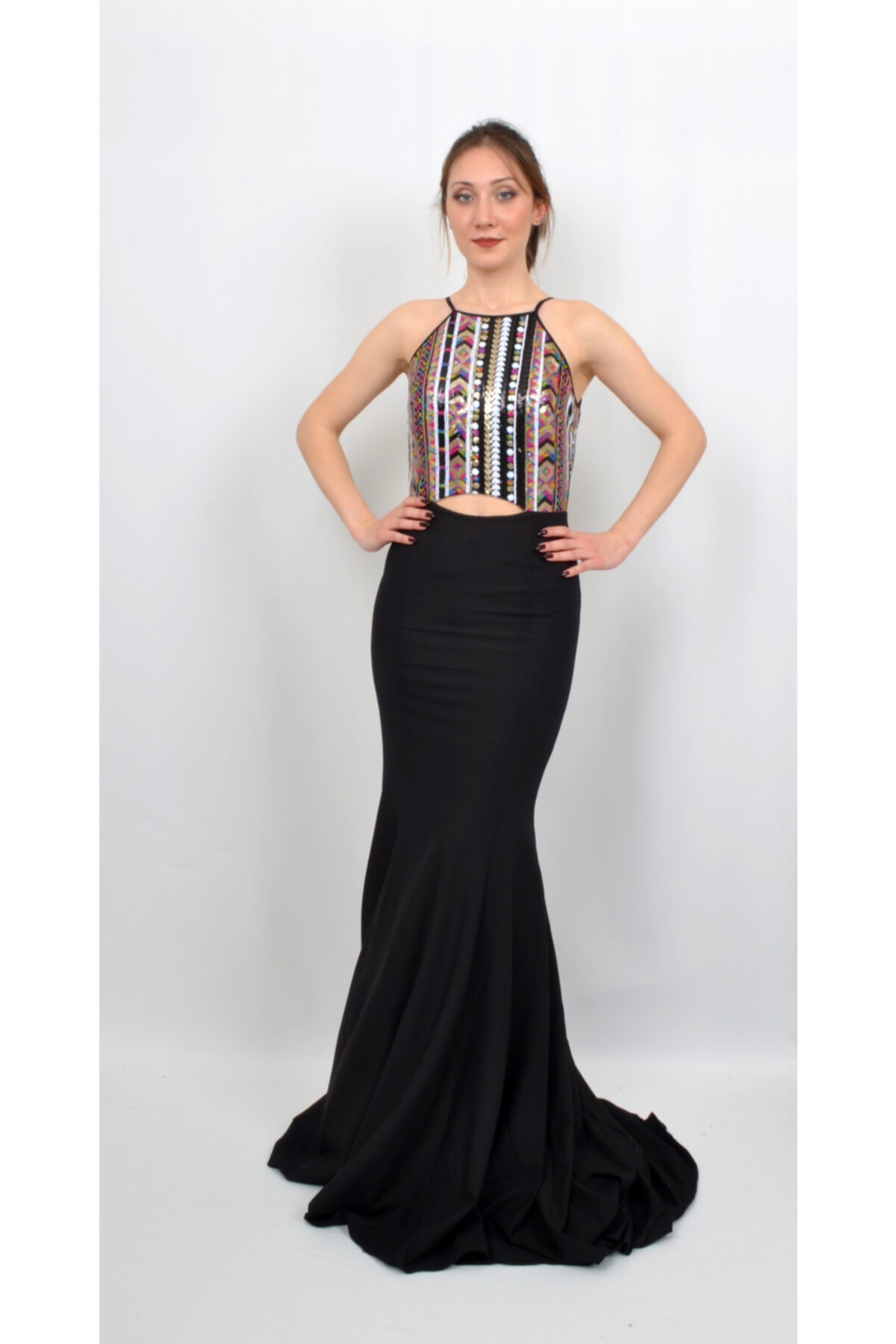 Черное вечернее платье ALİS с цветной вышивкой из пайеток, размеры 36, 38, 40
