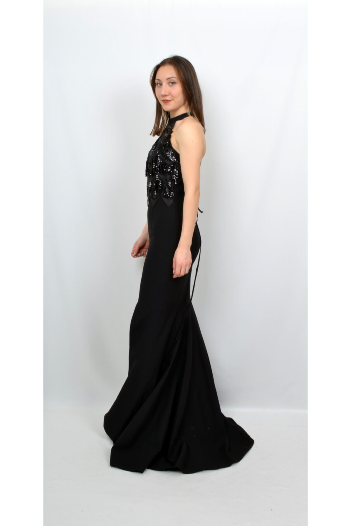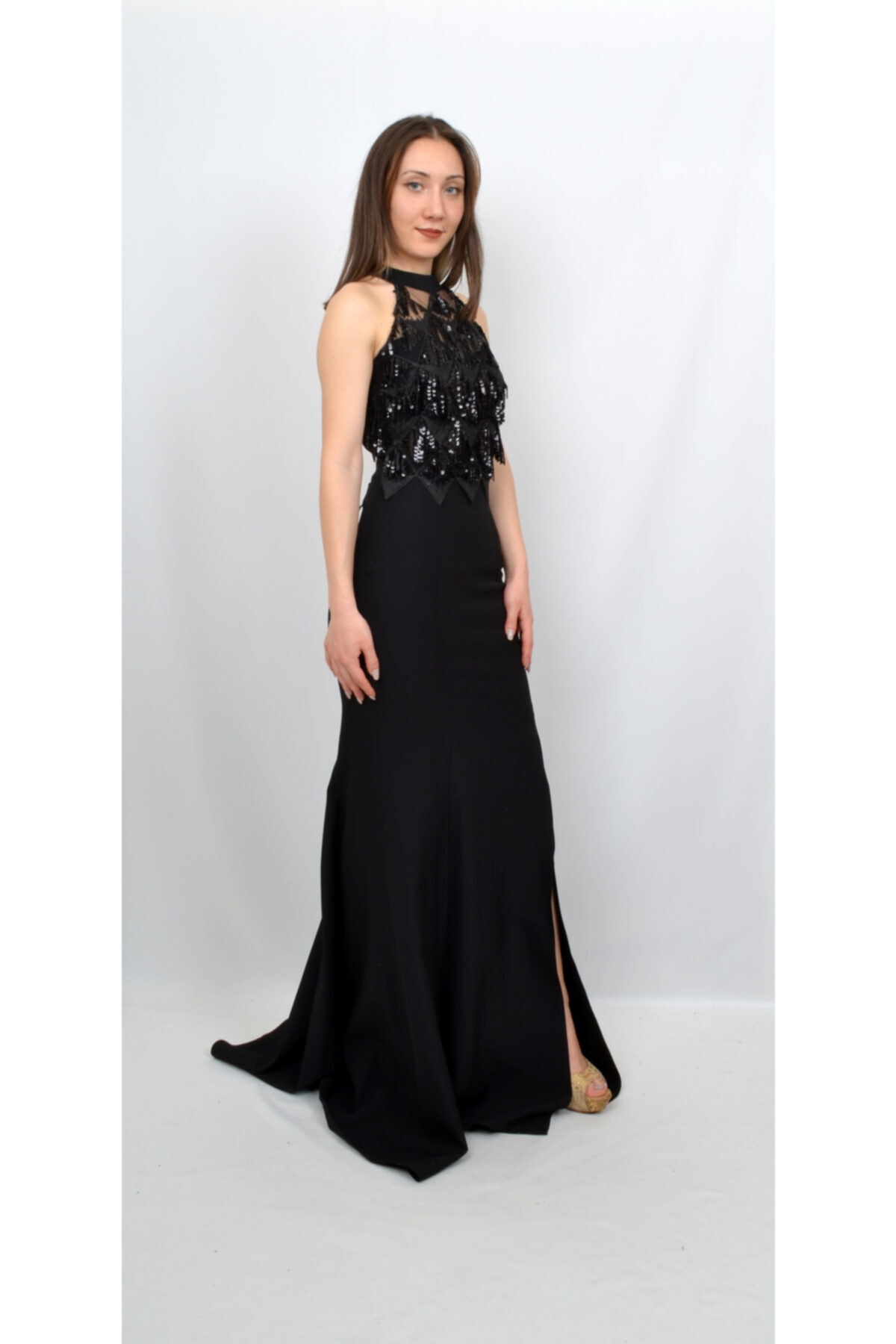 Черное вечернее платье ALİS с нашивками, разрезом и открытой спиной, размеры 36, 38, 40