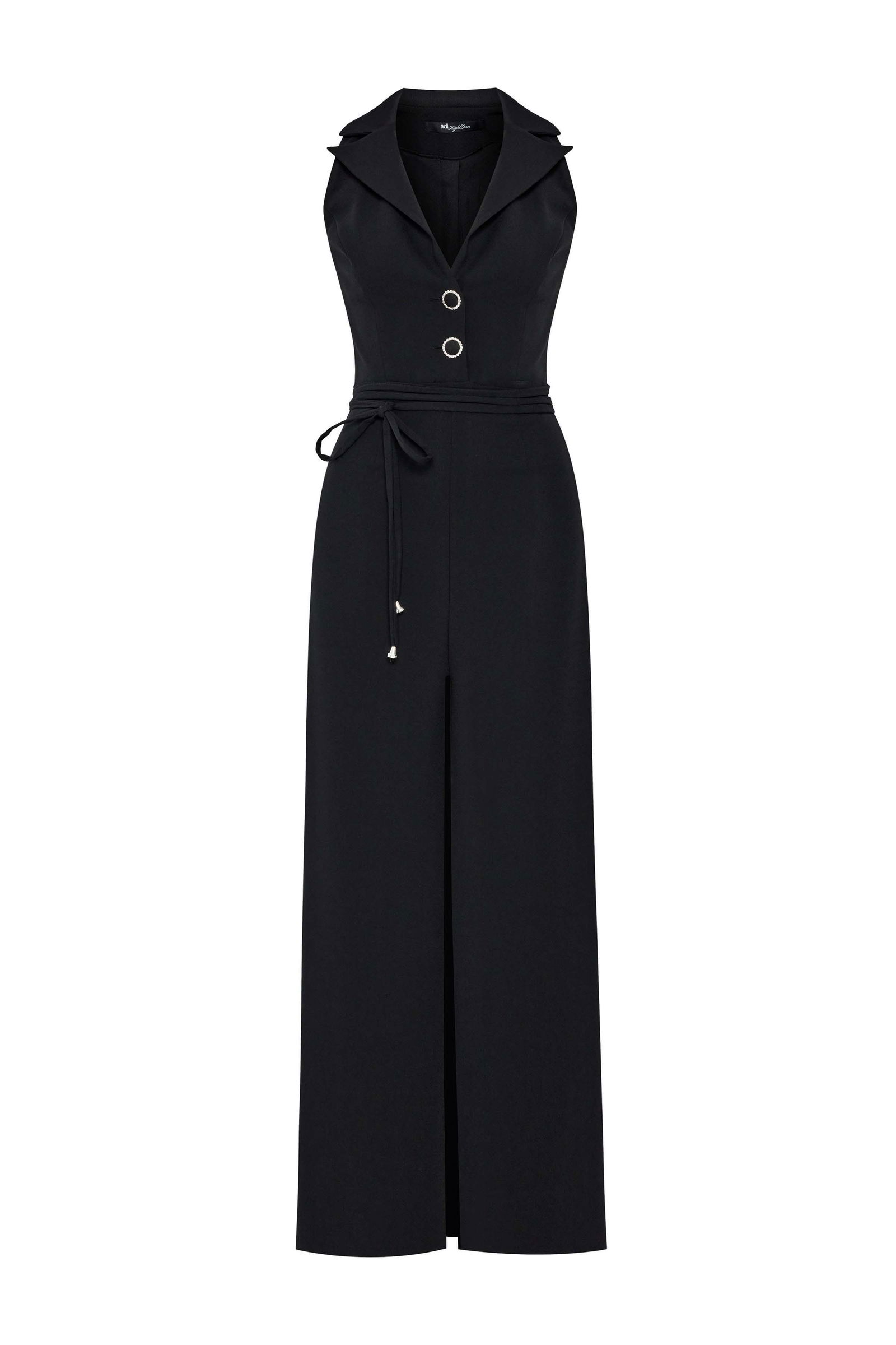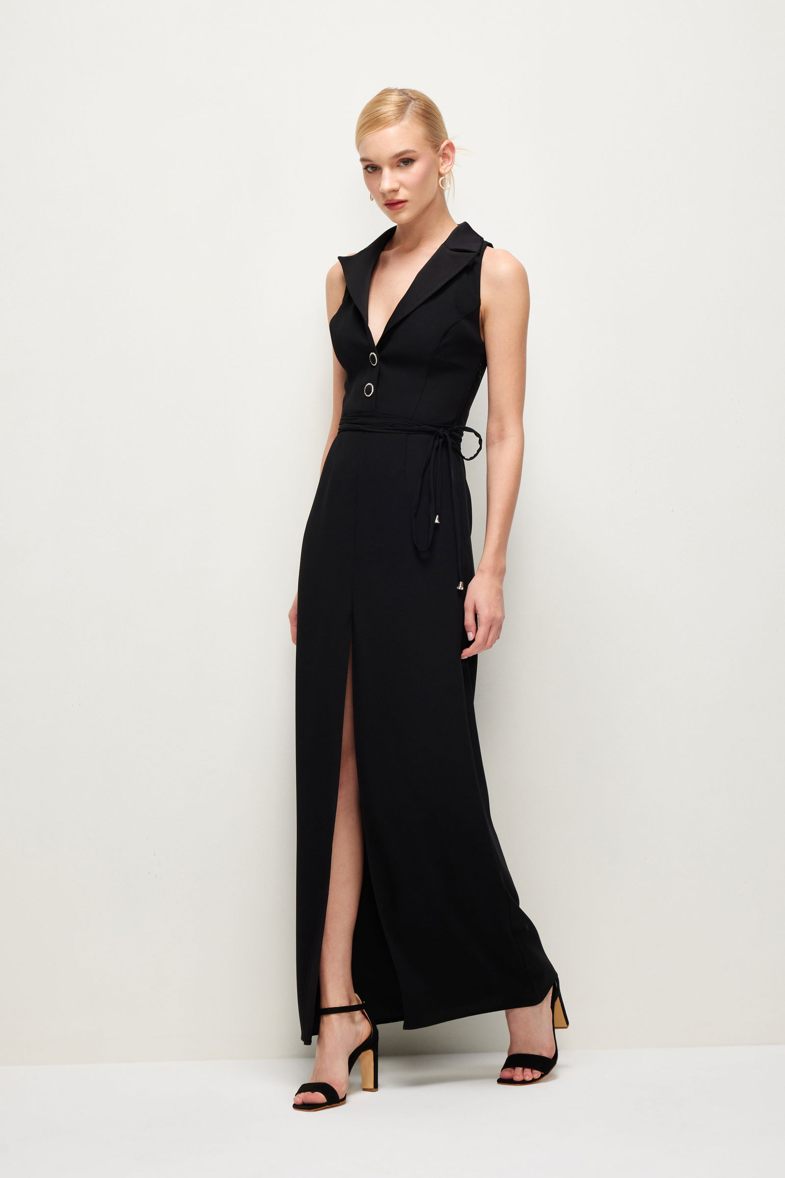 Черное жилетное платье с разрезами ночного цвета ADL, 100% полиэстер, приталенный силуэт, мужской воротник, размер S