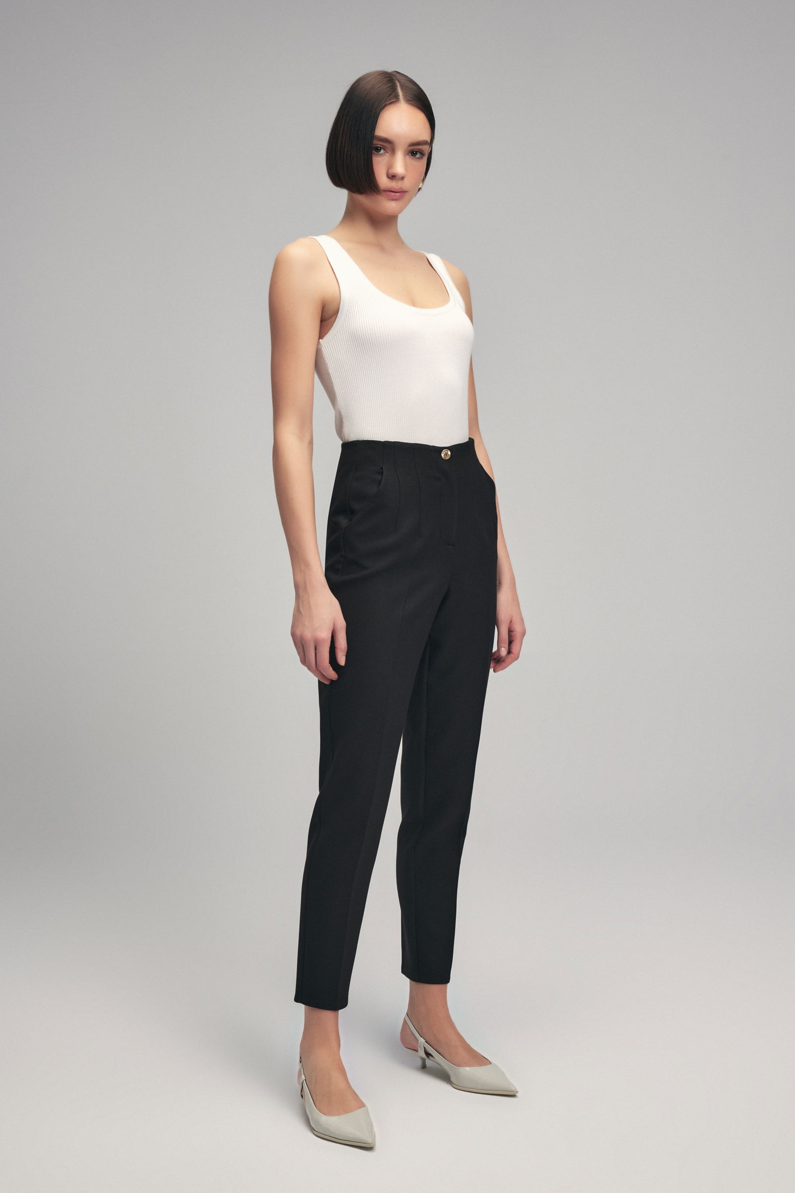 Черные брюки с высокой талией и зауженными штанинами для бизнеса, 76% полиэстер, 17% вискоза, 7% лайкра, модель S/36