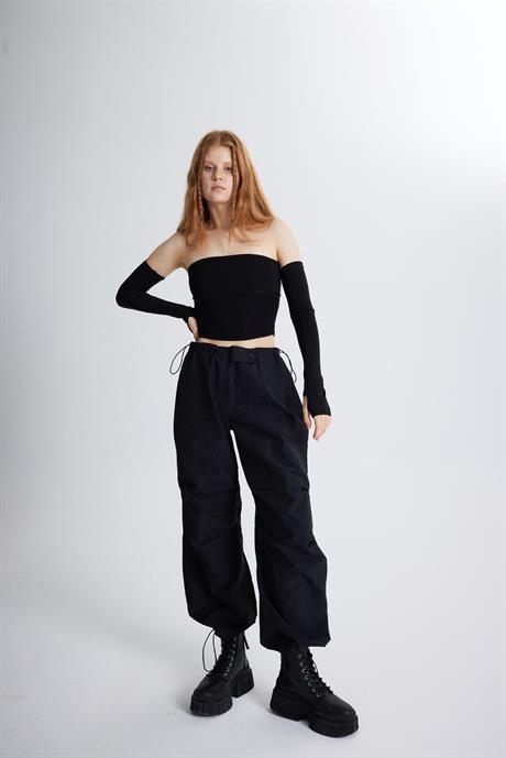 Черные парашютные штаны — стильный и удобный выбор, доступен в размерах S, XS, M, L