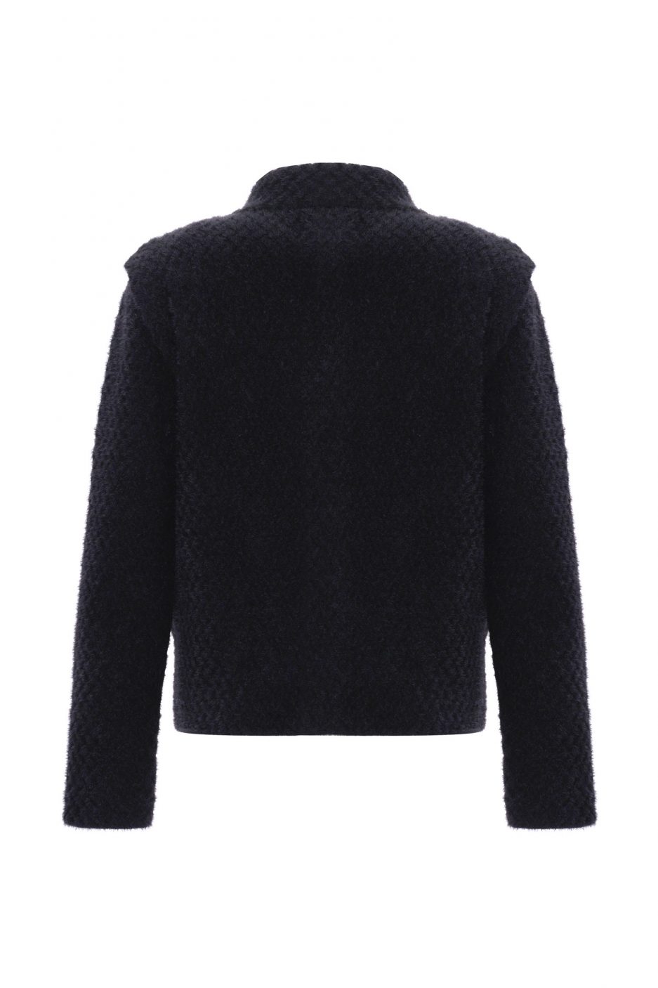Чёрное трикотажное пальто, 64% полиамид, 18% полиэстер, 18% вискоза, длинный рукав, воротник стойка, офисный стиль, нормальный крой.