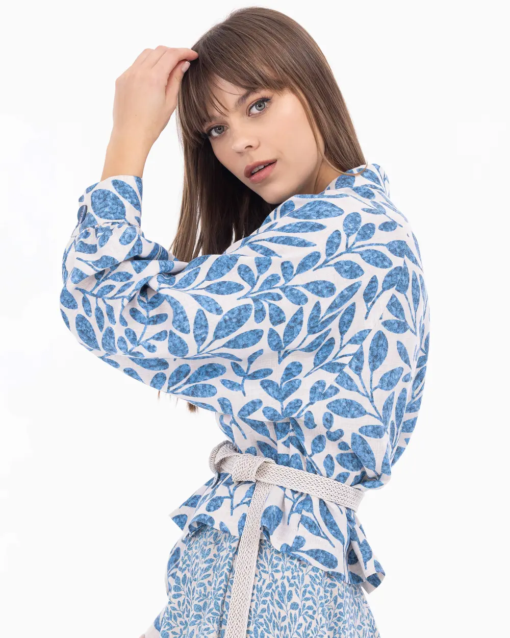Дизайнерский жакет с поясом, реглановые рукава, короткая длина, стильный синий цвет, размер 42, идеален для весенних образов