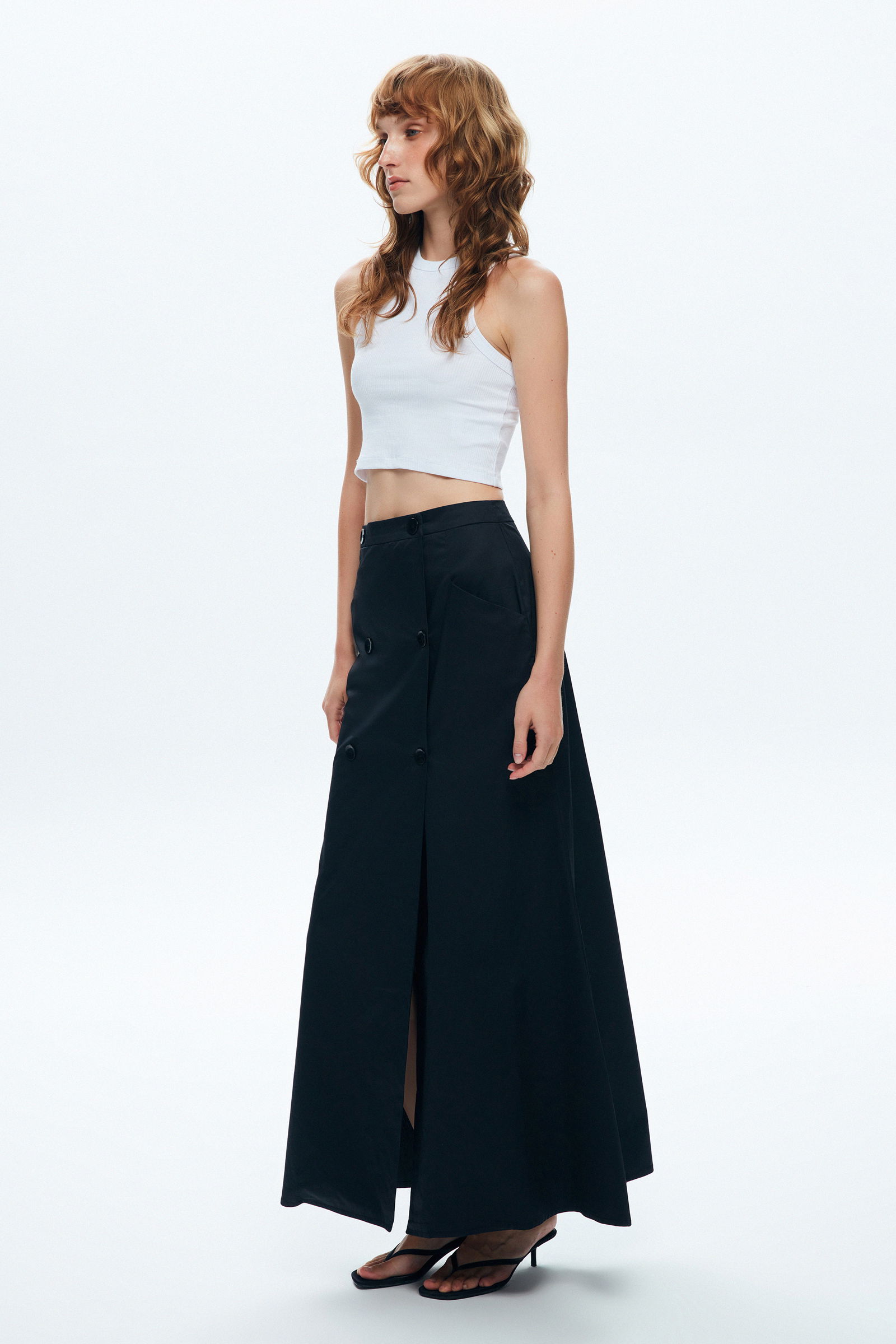 Длинная юбка черного цвета с карманами и кнопками от бренда MAVI, размер 34, 100% хлопок, бережная стирка и уход