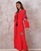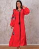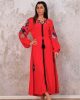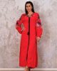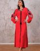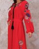 Длинное платье Markano с красным цветом, вышивкой на рукавах и подоле, с завязками на шее и поясом, доступно в размерах 36-42