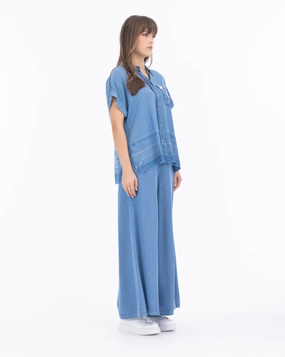 Эта джинсовая рубашка с вышивкой, выполненная из тенсела, обеспечивает комфорт в жаркие дни. Ее аккуратный крой и продуманные разрезы делают изделие стильным и универсальным. Данная модель отлично подходит для сочетания с широкими брюками из той же ткани, позволяя создать гармоничный стильный образ. Компания SEÇİL STORE предлагает вам уникальный продукт с передовым дизайном. Рубашка имеет отложной воротник, короткие рукава и акцентные вышивки, что делает ее идеальной для модного гардероба. Высокое качество материалов, таких как 33% хлопка, 27% полиэстера и 40% вискозы, обеспечивает долговечность и приятные ощущения при носке.