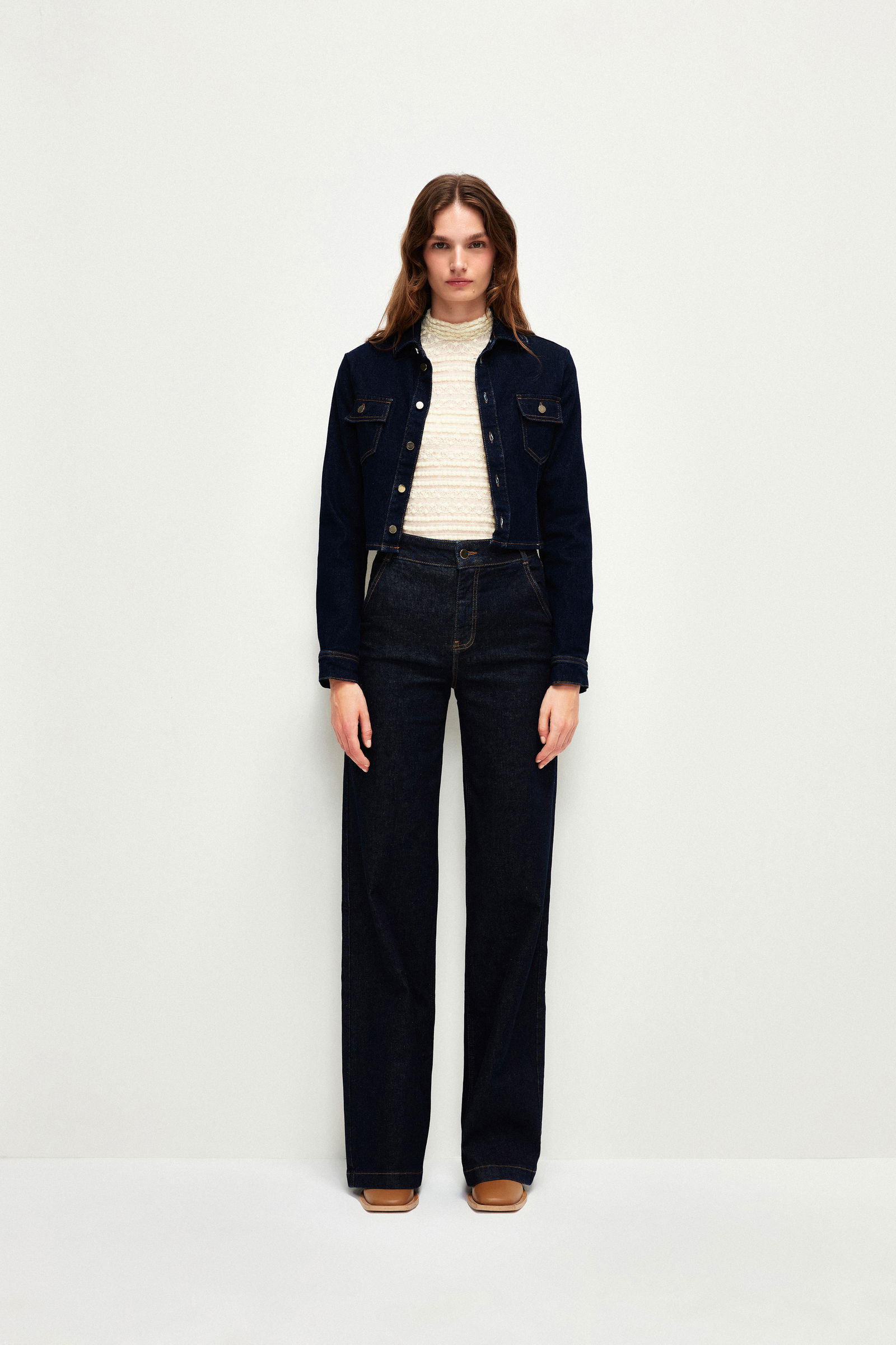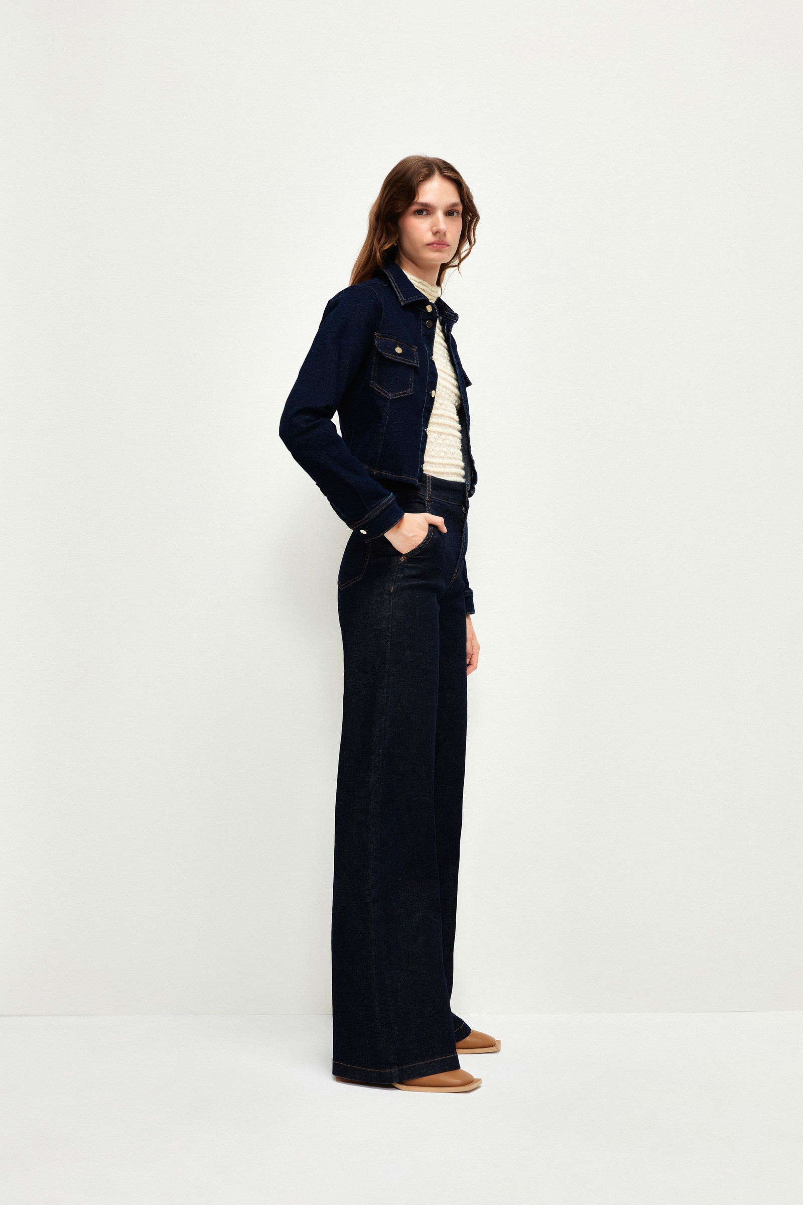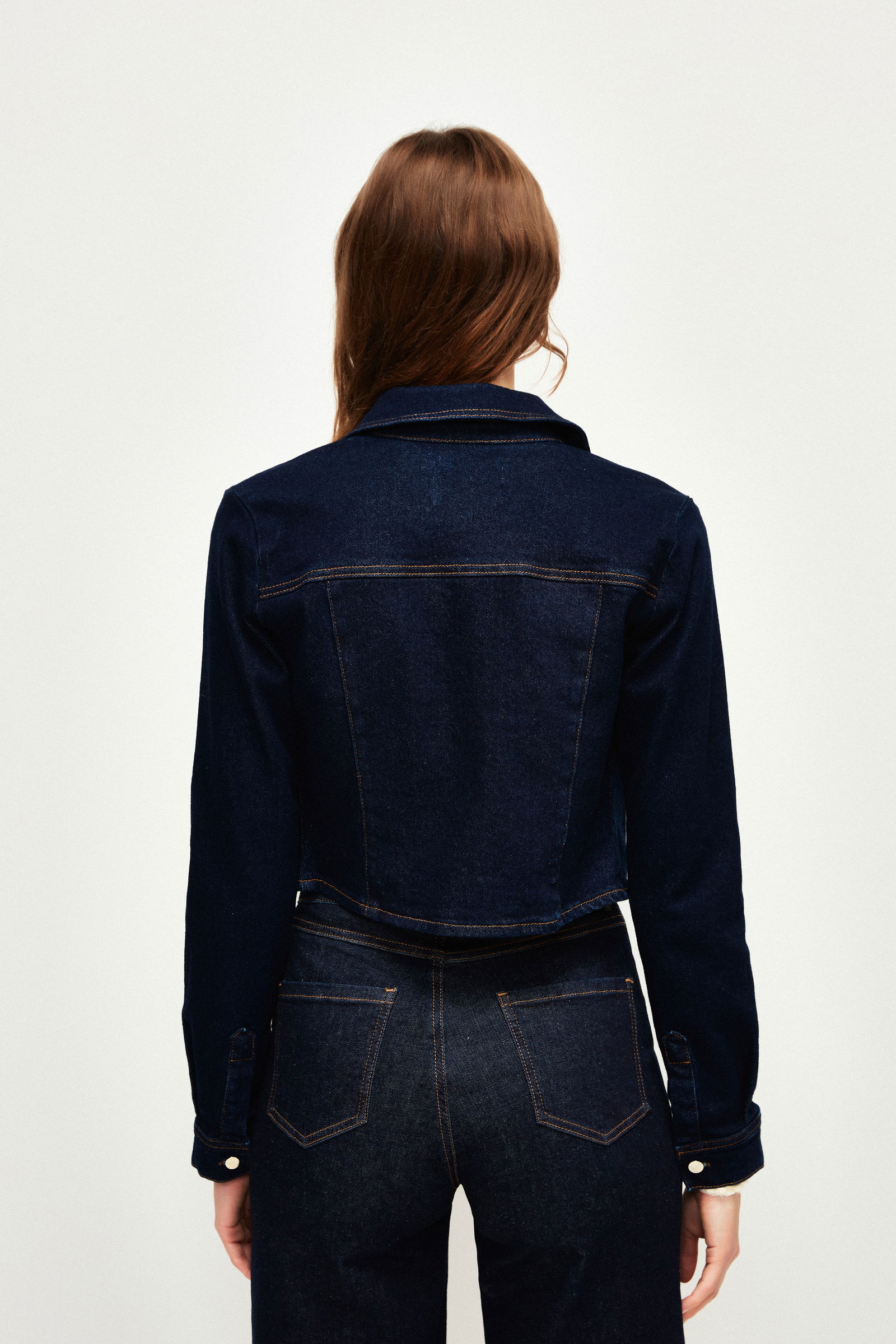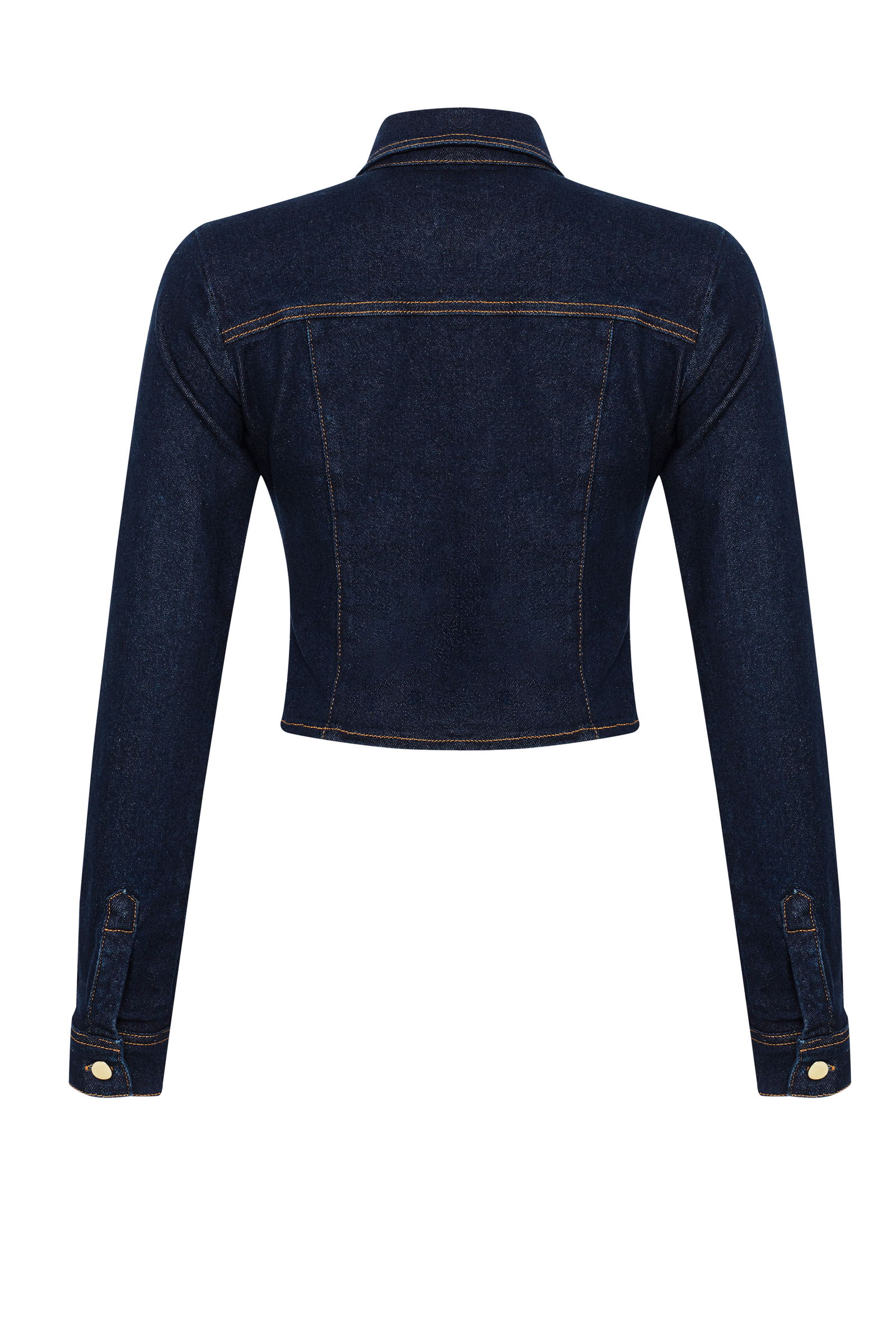 Джинсовый жакет темно-синего цвета с карманами и пуговицами из 99% хлопка и 1% эластана, мужской воротник, длинный рукав, офисный стиль