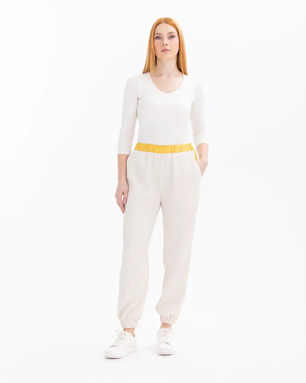 Эластичные брюки до щиколотки с карманами, комфортный и стильный выбор для повседневной носки, кремовый цвет, размеры S, M, L