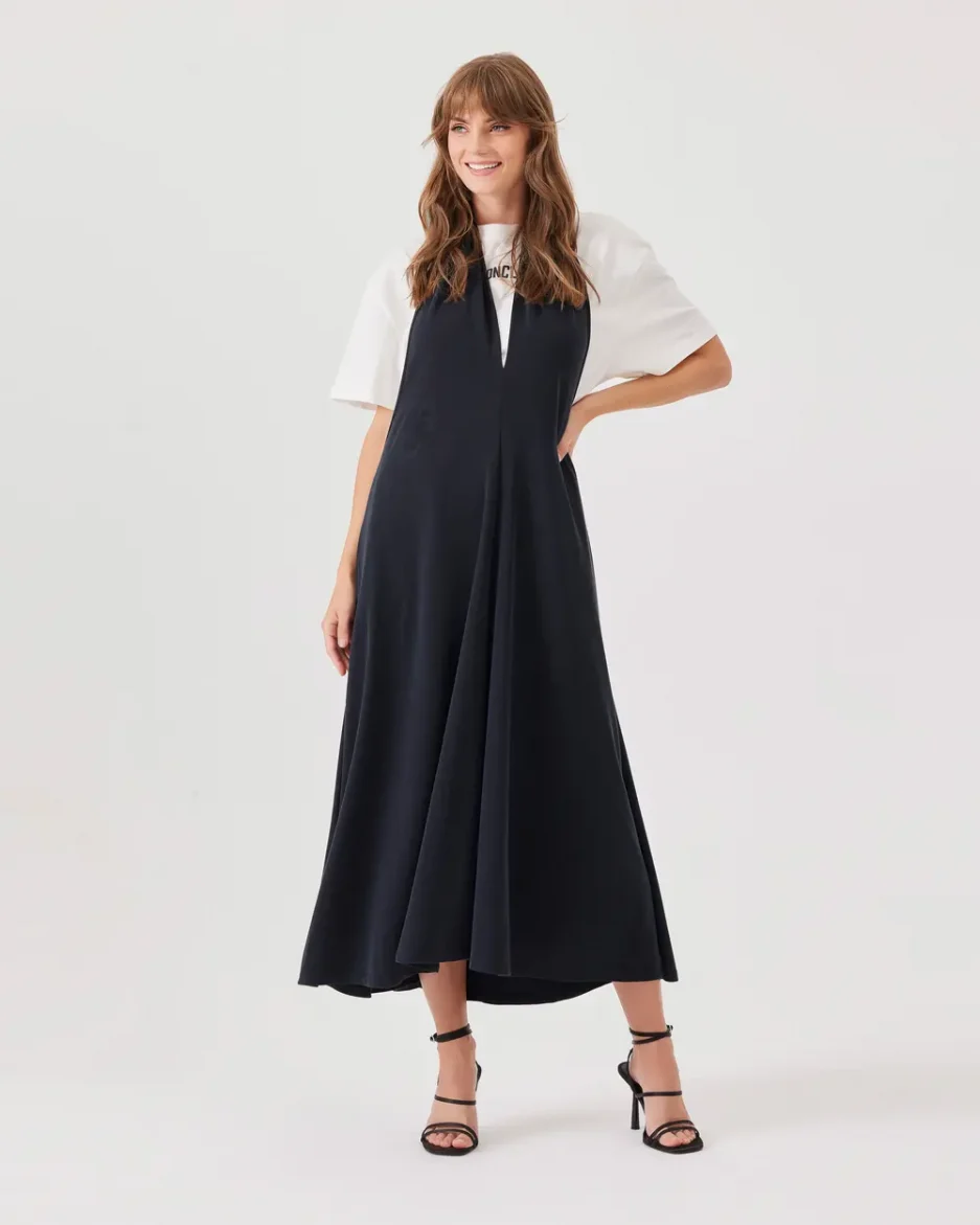 Элегантное миди-платье с открытой спиной из смеси тенселя, черного цвета, идеально для повседневного ношения и летних мероприятий