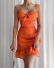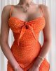 Элегантное оранжевое платье с завязкой на груди и гороховым принтом, длина 85 см, модель подходит для стандартных размеров S, M, L
