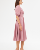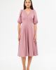 Элегантное платье миди с баллонными рукавами, V-образным вырезом, отделкой пояса и декоративными пуговицами, ткань: хлопок-полиэстер-эластан, тёмно-розовый