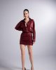 Элегантное платье Регина бордового цвета с мини-длиной, рукавами, сборками и воротником, идеальное для особых случаев и мероприятий