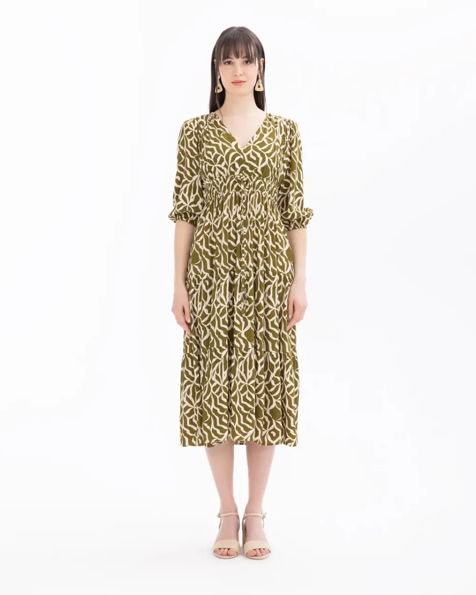 Элегантное платье с V-образным вырезом и сборкой на талии, принтованный, из качественного материала, идеальное для повседневной носки
