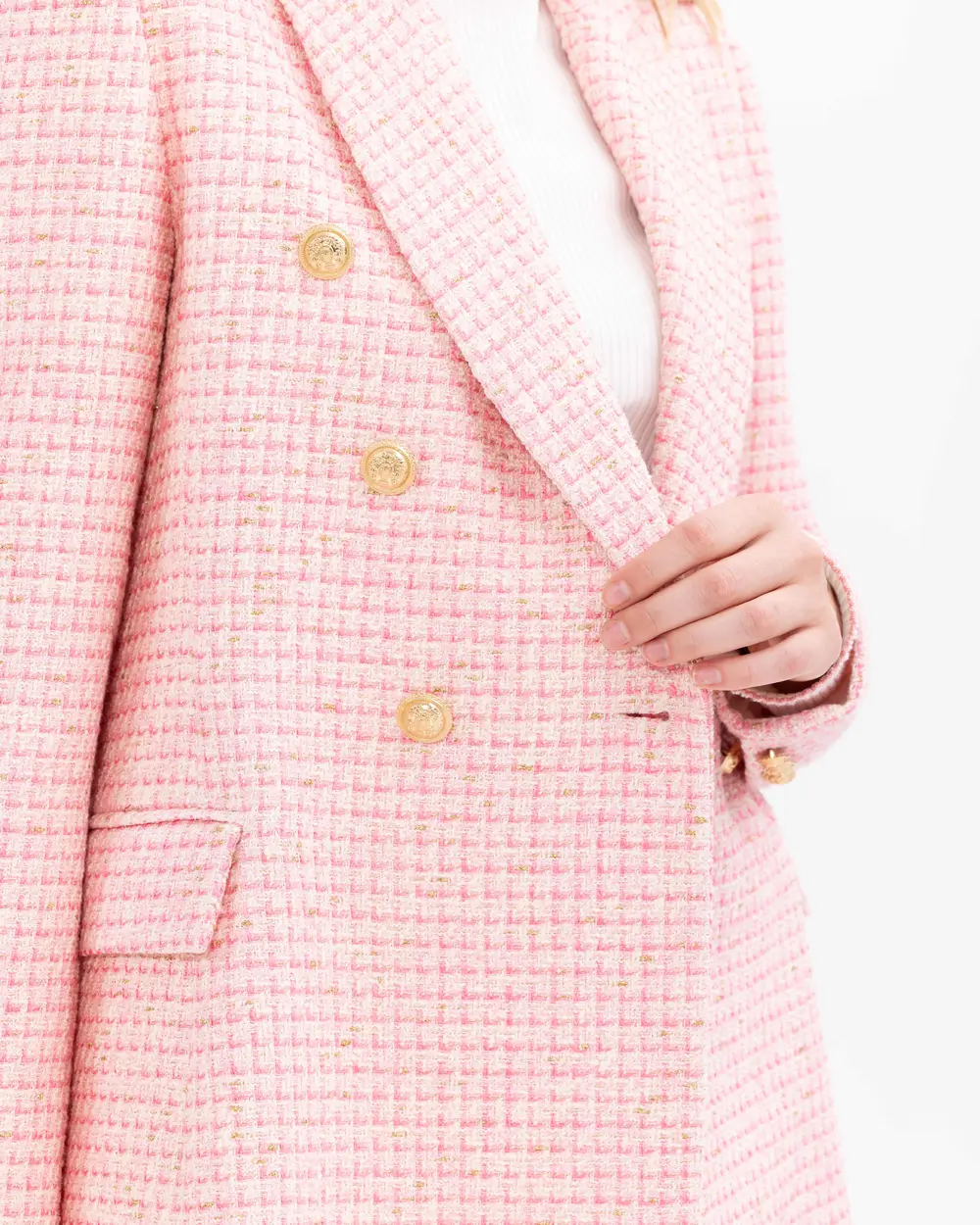 Элегантный жакет с кнопками и карманами, с перекрестным воротником, в розовом цвете, стильный для работы и особых случаев