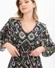Этническое платье с V-образным вырезом и резинкой на талии, миди длины, батник, 100% полиэстер, подходит для повседневной и вечерней носки