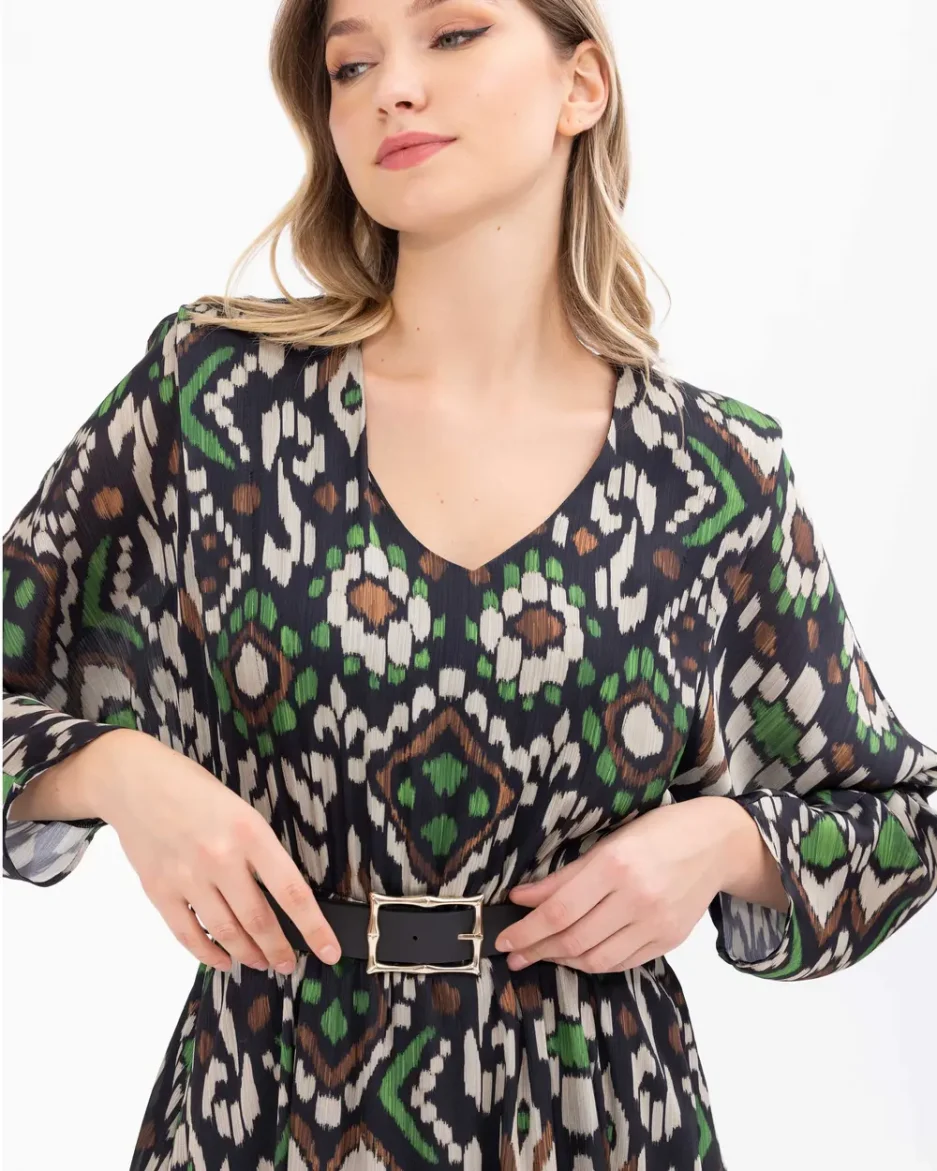 Эта элегантная платье с этническим узором идеально сочетает в себе стиль и комфорт. С изящным V-образным вырезом и эластичным поясом, оно подходит как для повседневной носки, так и для особых случаев. Платье отличается рукавами типа "летучая мышь" и красивыми деталями на плечах, подчеркивая женственность и утонченность.SEÇİL STORE предлагает вам уникальную возможность добавить это платье в свой гардероб. Сделанное из 100% полиэстера, оно легко ухаживается, обеспечивая долгий срок службы. Это модели midi длины, которая отлично смотрится на любых женщинах. Позвольте себе насладиться комфортом и стилем с платья от SEÇİL STORE.