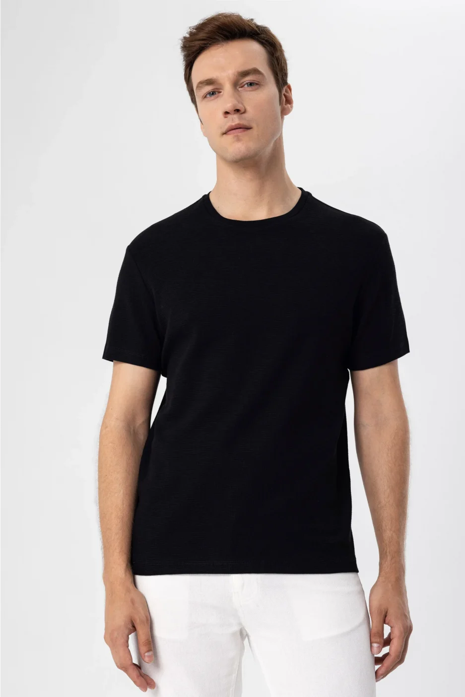Эта футболка с круглым вырезом и регулярным кроем выполнена из 100% хлопка, что обеспечивает комфорт и мягкость в носке. Стильный дизайн делает её идеальным выбором для повседневных образов. Прочная и износостойкая ткань прекрасно сохраняет форму после стирки, позволяя носить изделие снова и снова, не беспокоясь о качестве.Невероятно универсальная футболка, которая отлично подойдёт для мужского гардероба. Она станет основным элементом в вашем костюме, подходя для различных случаев. Компания SÜVARİ гордится производством в Турции и обещает высокое качество, отличное сочетание стиля и комфорта, подходящее для современного мужчины.