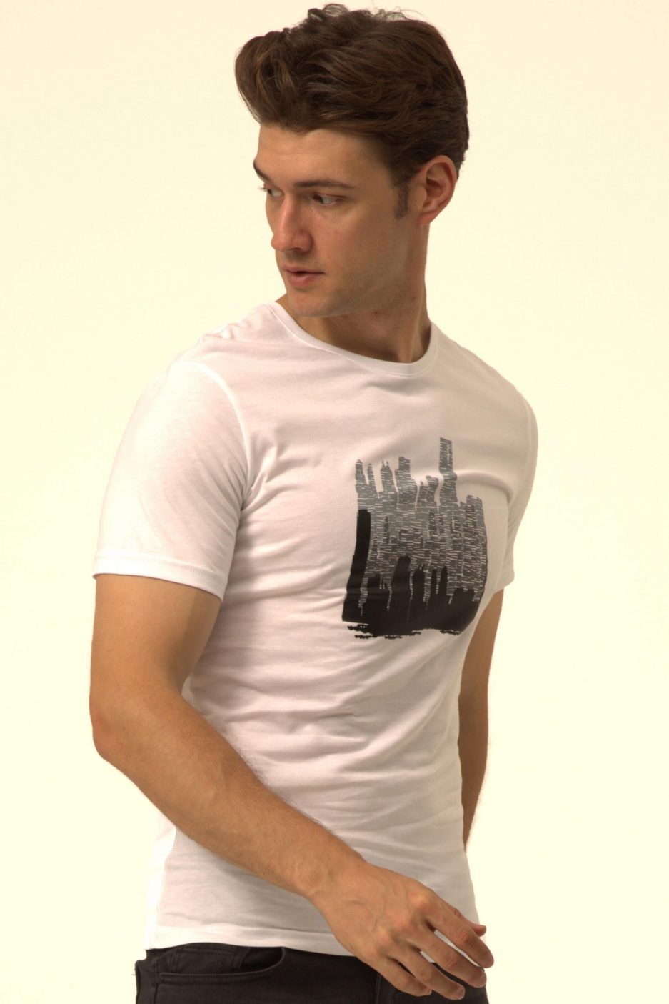 Футболка с принтом и круглым вырезом, Slim Fit, 100% хлопок, белая, размеры XL и XXL, Турция