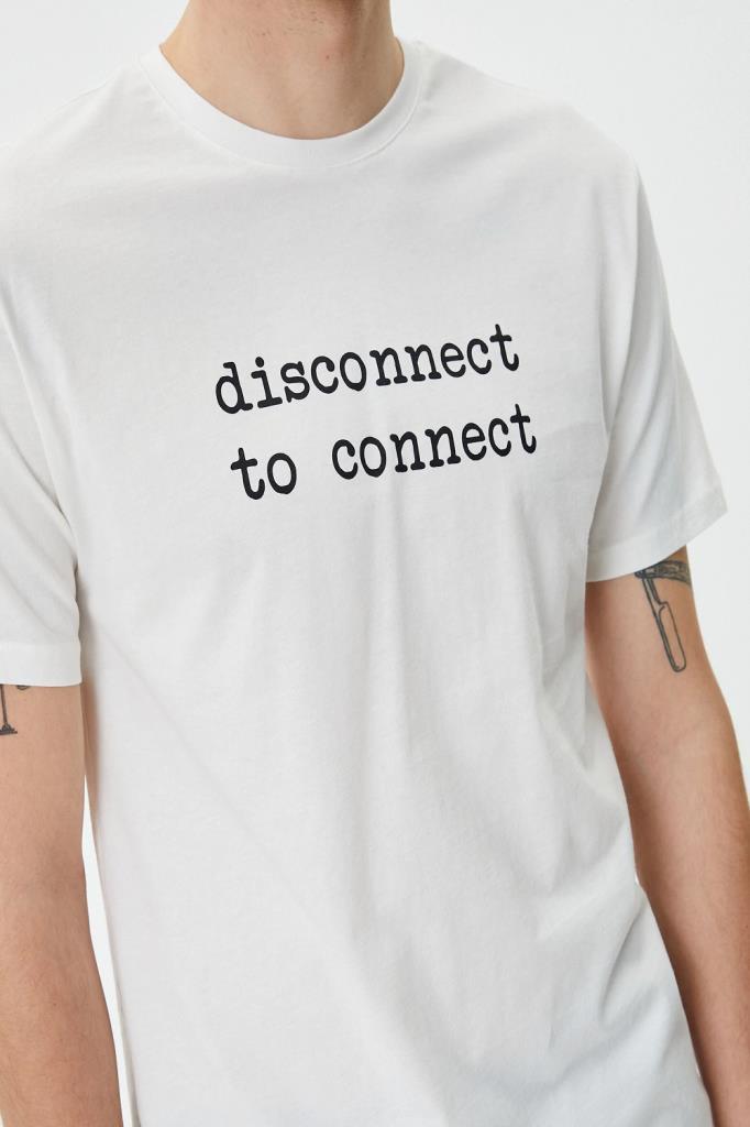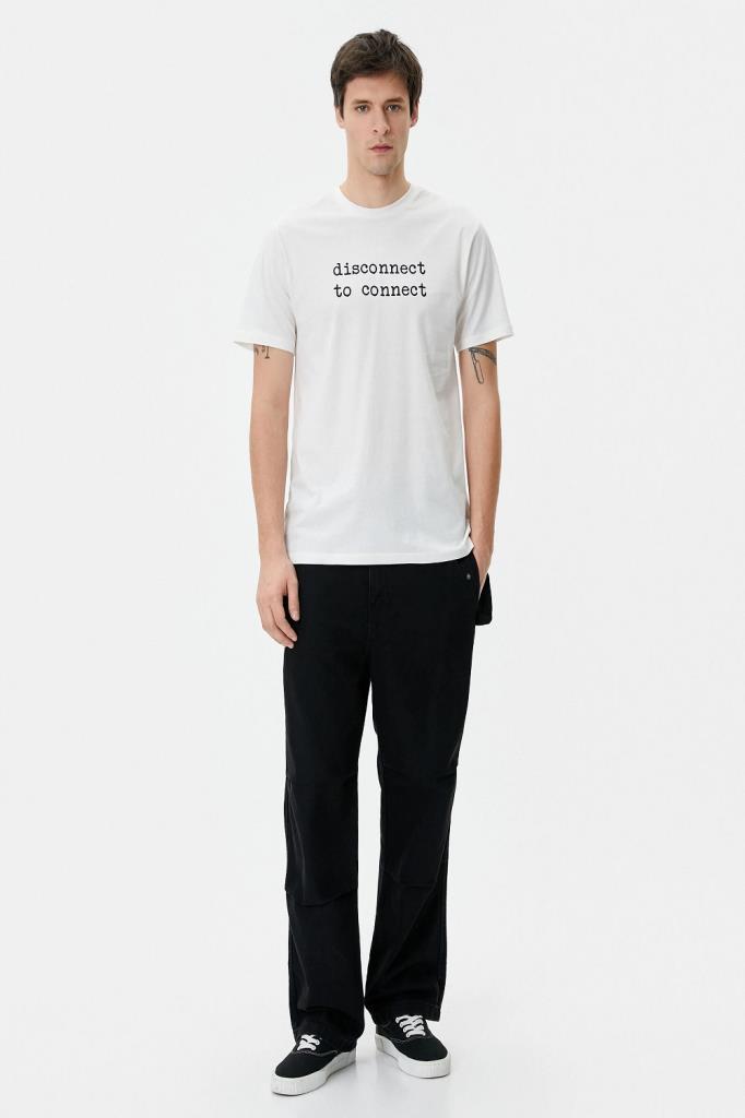Футболка с слоганом Koton, с коротким рукавом и круглым вырезом, узкий фасон, 100% хлопок, цвет белый, размеры S, M, L, XL, XXL