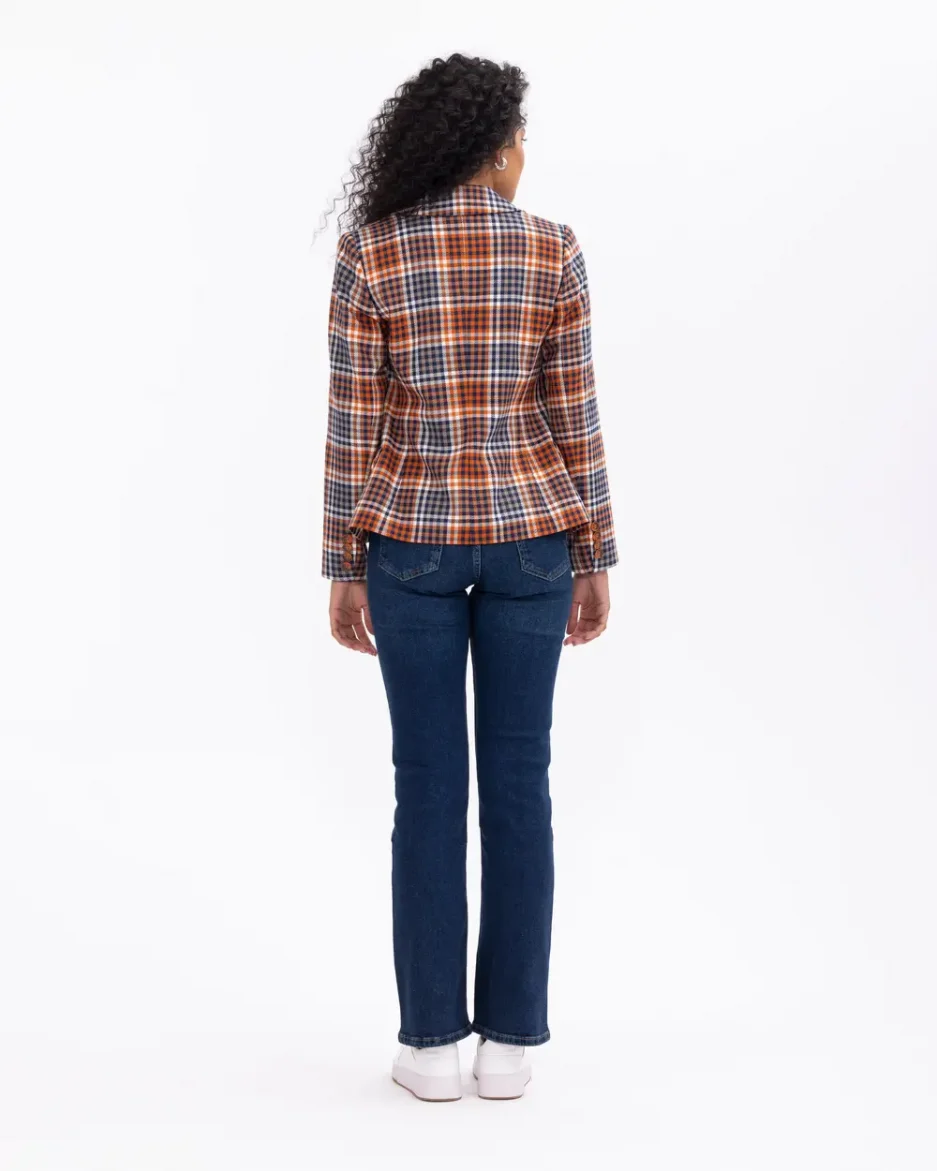 Классный жакет с заплатками и клетчатым узором, стильный и удобный, для повседневной и торжественной носки, цвета: оранжевый, размеры: 36-42