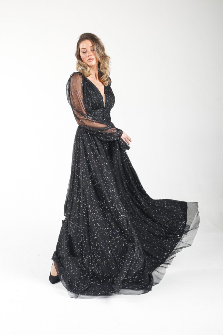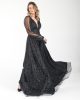 Коктейльное платье ALİS черного цвета с поясом и пуговицами, с блестящим тюлем, размеры 36-46