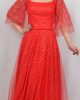 Коктейльное платье ALİS красное с квадратным блестящим декором, узкое, рекомендуется брать на размер больше