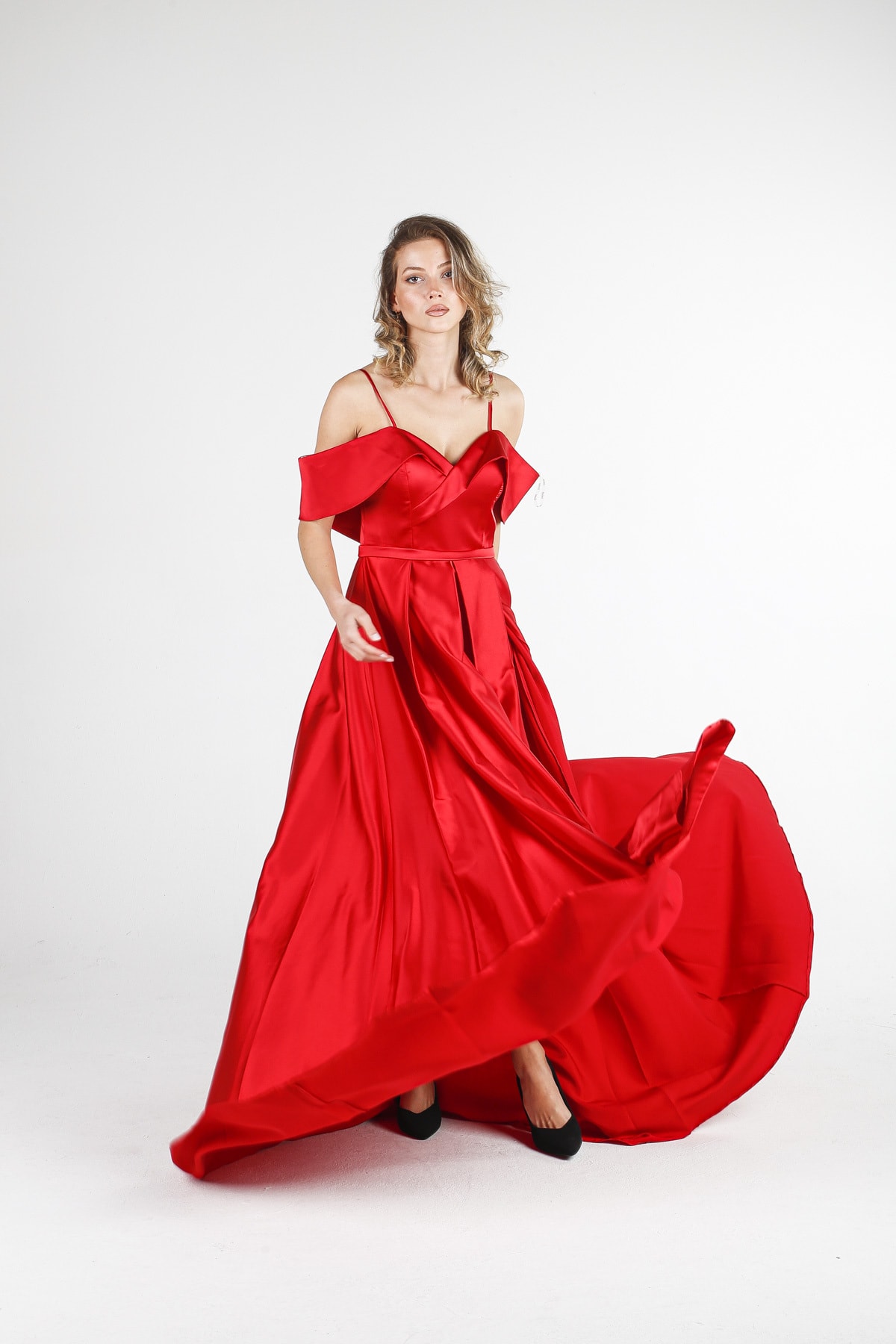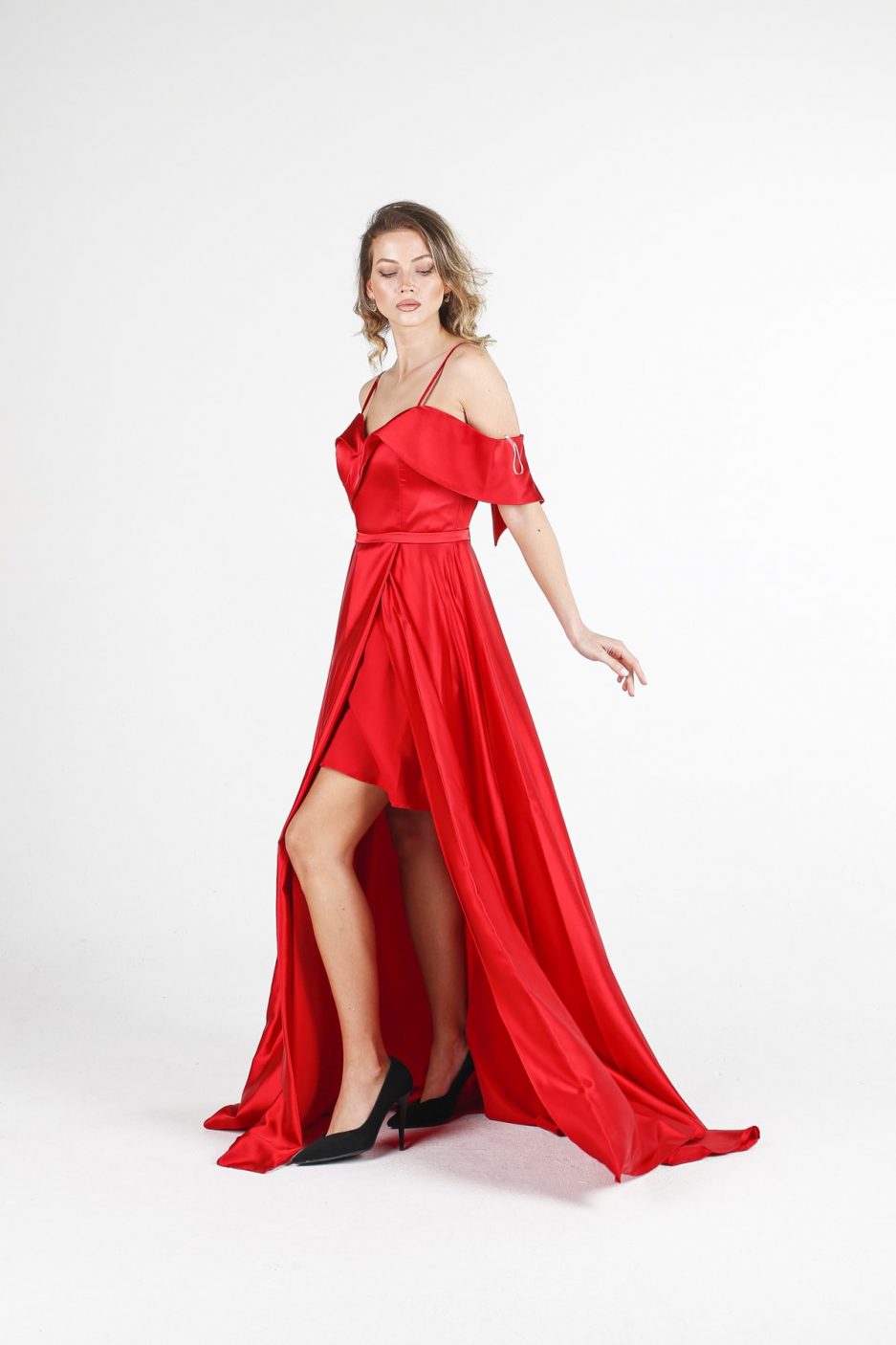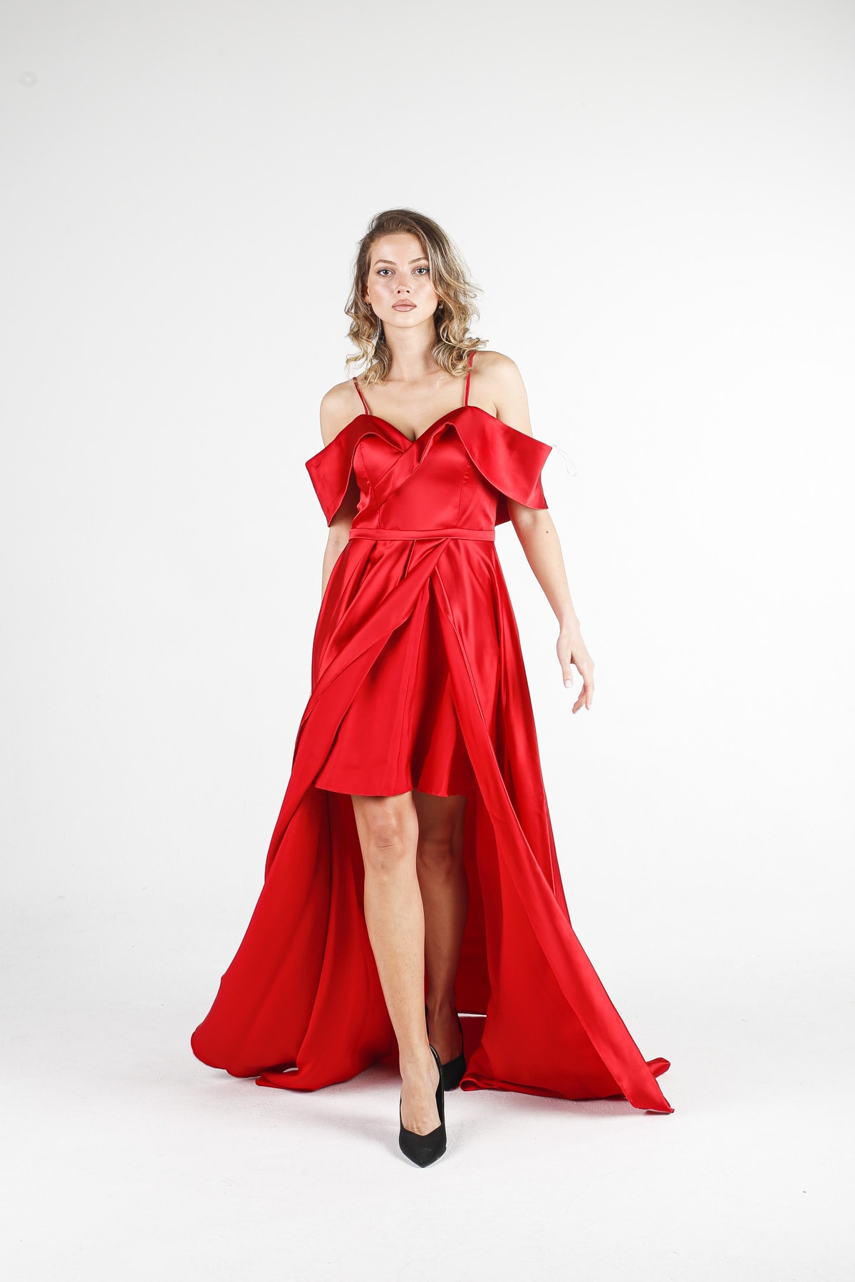 Коктейльное платье ALİS красное с широкими бретелями, атласное, размеры 36-42