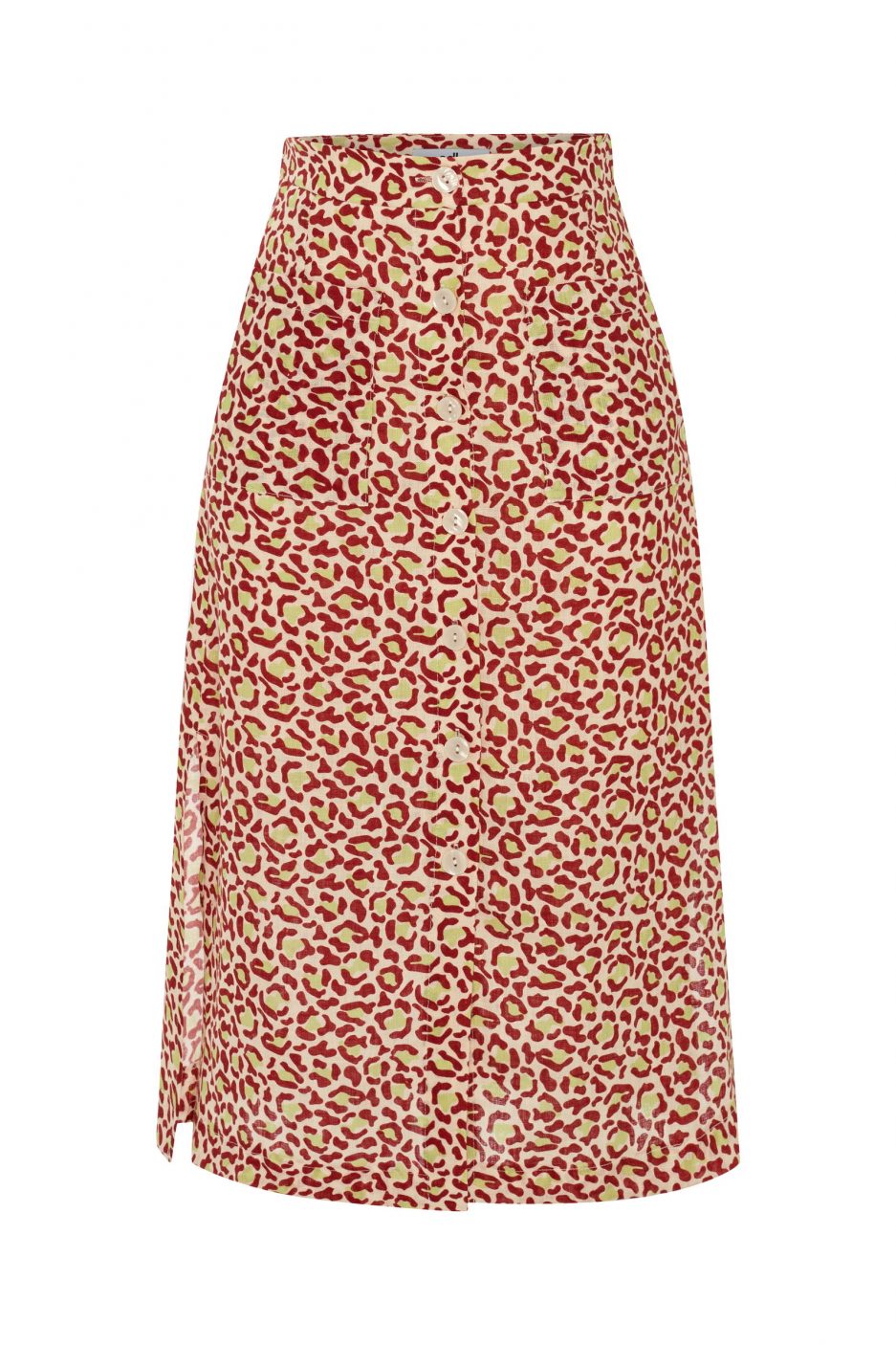 Коричневая юбка с пуговицами и карманами, 100% лен, размер S, XS, длина 76 см, модель Chic, стирка в холодной воде, деликатная глажка