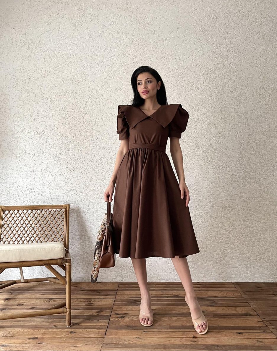 Коричневое платье с большим воротником из поплина, 100% хлопок, размеры S-3XL, длина 105-110 см, идеальное сочетание стиля и комфорта