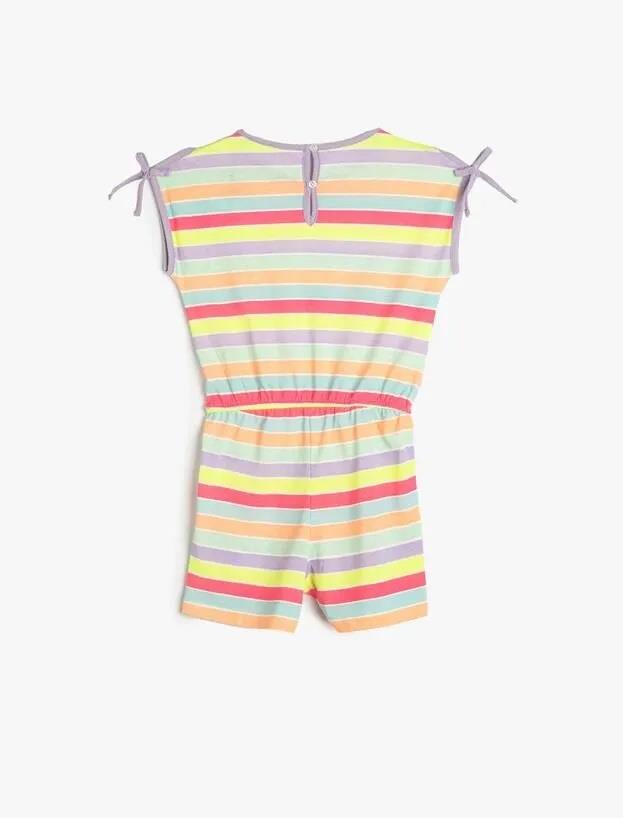 Короткий комбинезон для девочек Koton с безрукавным дизайном, круглым вырезом и бантом, 100% хлопок, доступен в разных размерах и цвете экрю