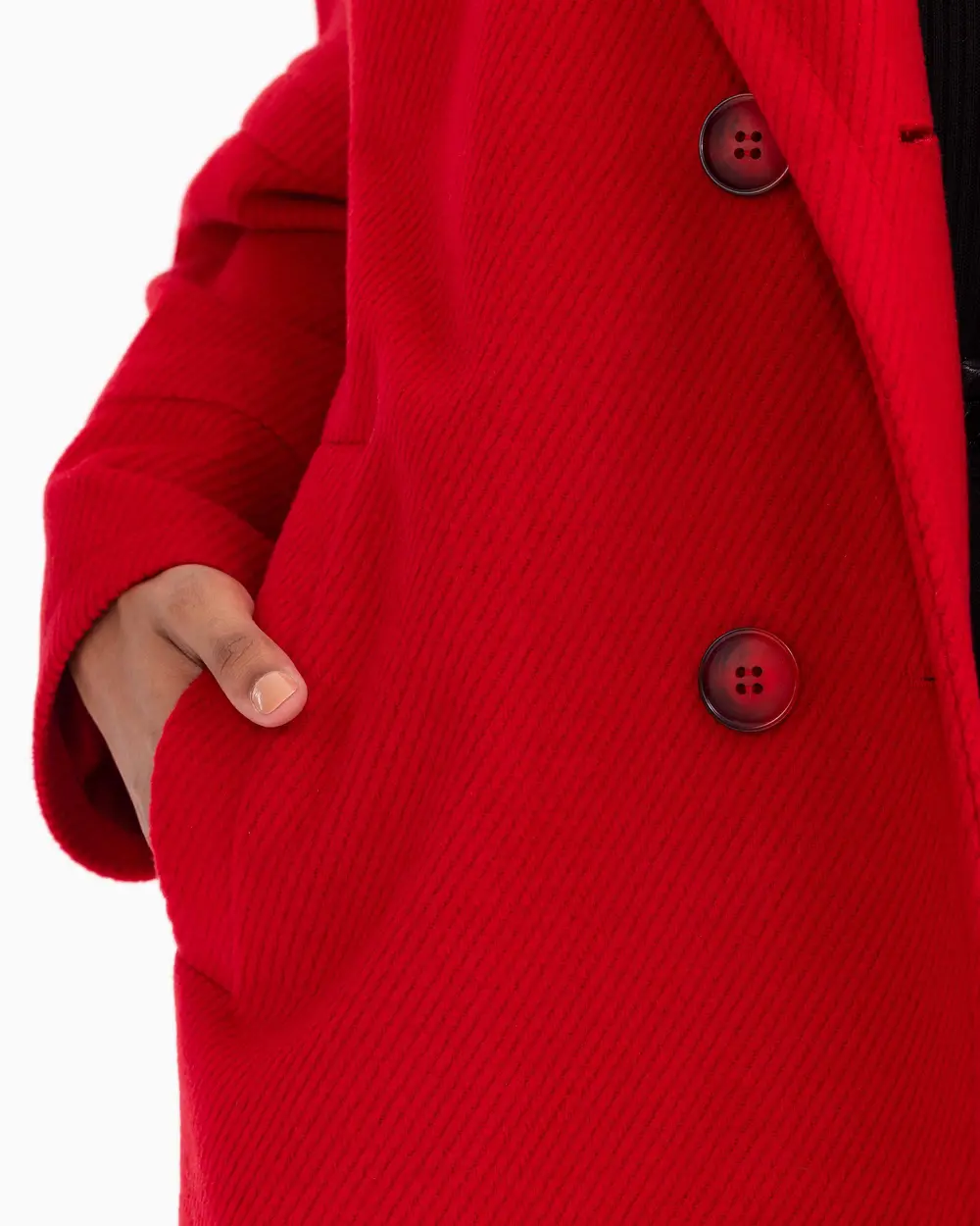 Короткое пальто с двубортным воротником и пуговицами, красное, с длинными рукавами, широким кроем и двойными карманами