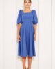 Короткое платье миди с квадратным вырезом и кружевными рукавами, синяя котоновая ткань, р. 34-54, на молнии, мягкое и стильное