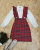 Красная клетчатая комбинезонная юбка из 100% акрилового материала, длина 58-62 см, размер S-3XL, ручная стирка рекомендуется