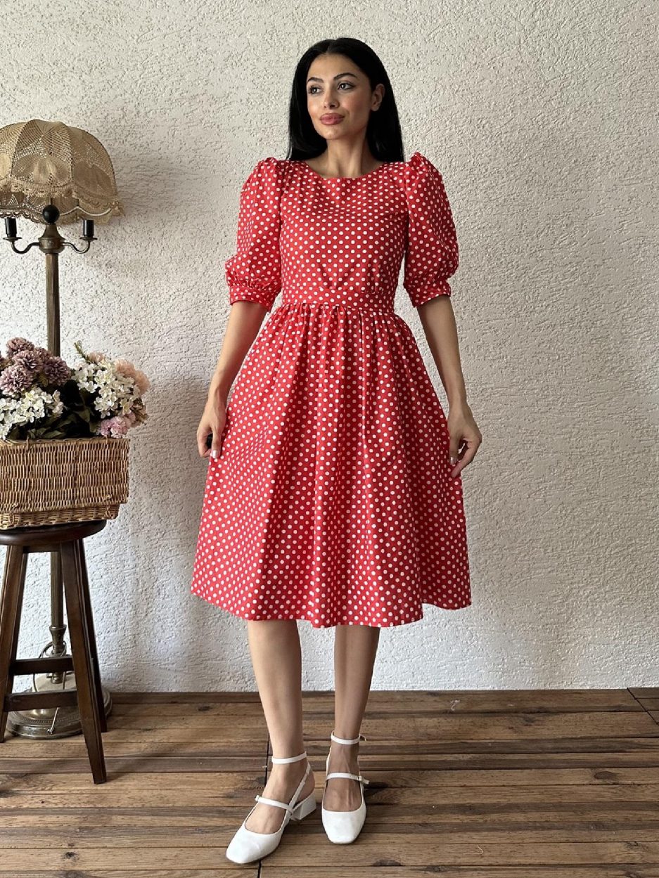 Красное платье с цветными горошками и короткими рукавами из 100% хлопкового поплина, размер S-3XL, мягкий, удобный и не просвечивает