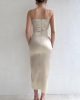 Кремовое сатиновое платье с драпировкой на груди и тонкими бретелями, размер М