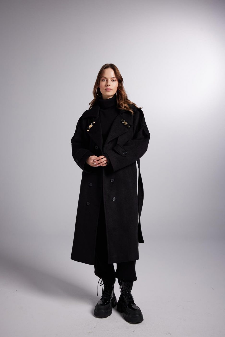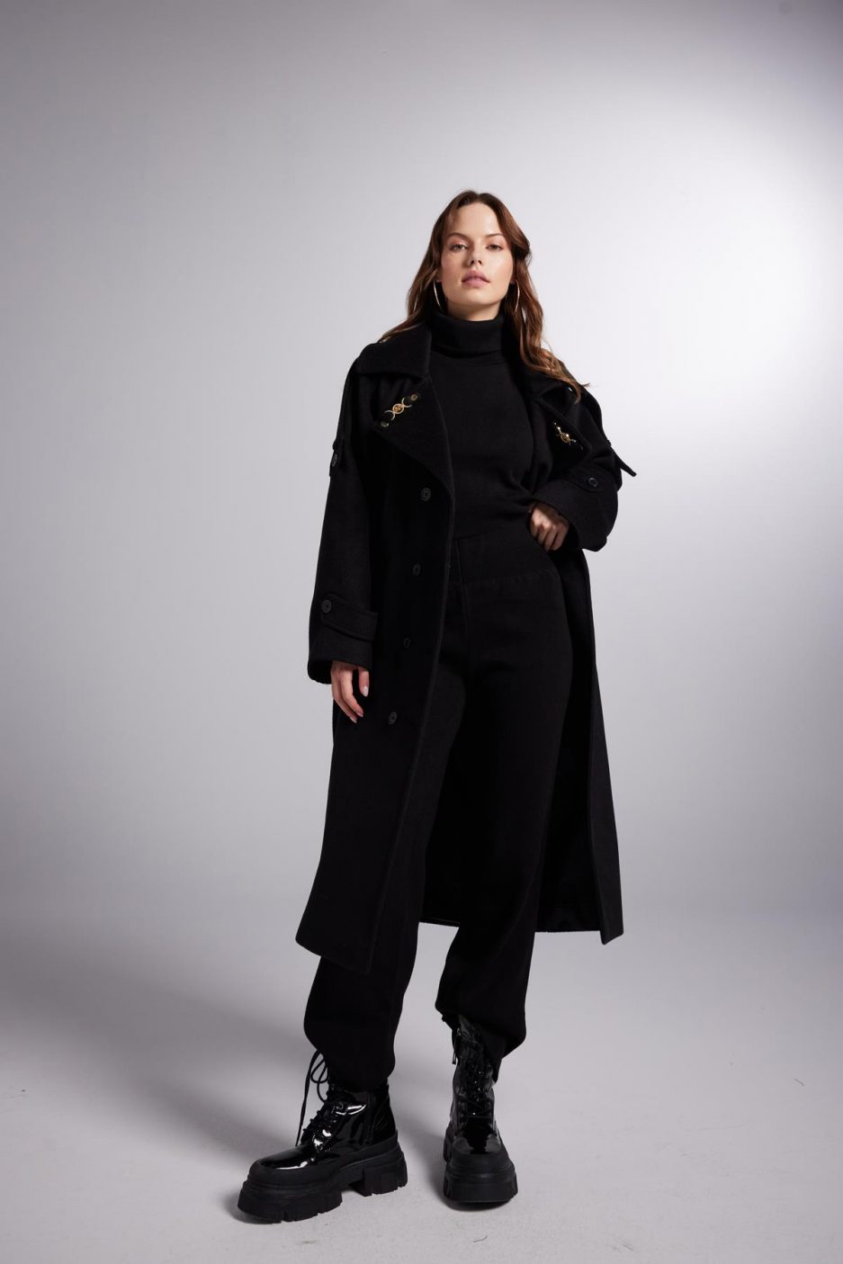 Макси-пальто с аксессуарами из смеси шерсти, черное, размер XS