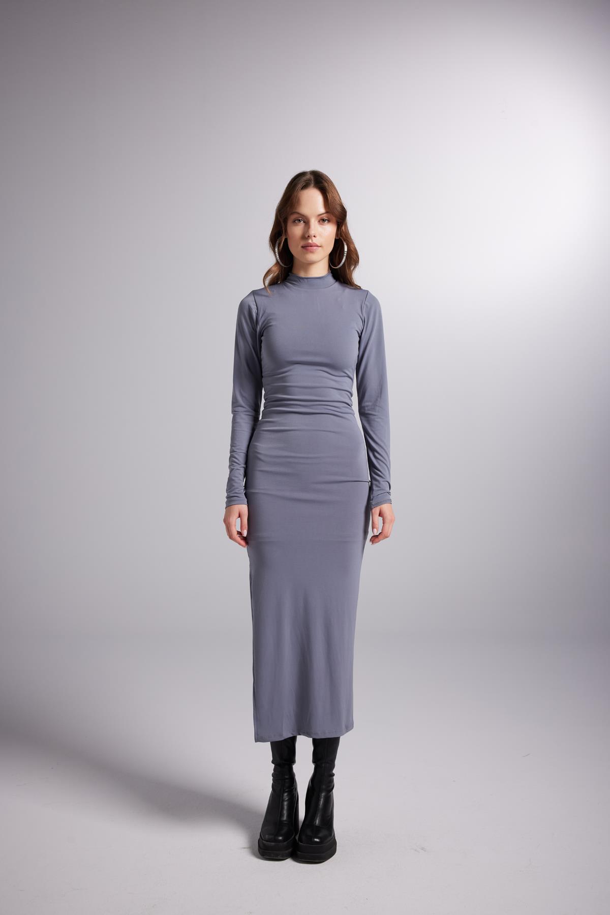 Макси платье полуподолговатого силуэта, серое, размер XS, стиль bodycon